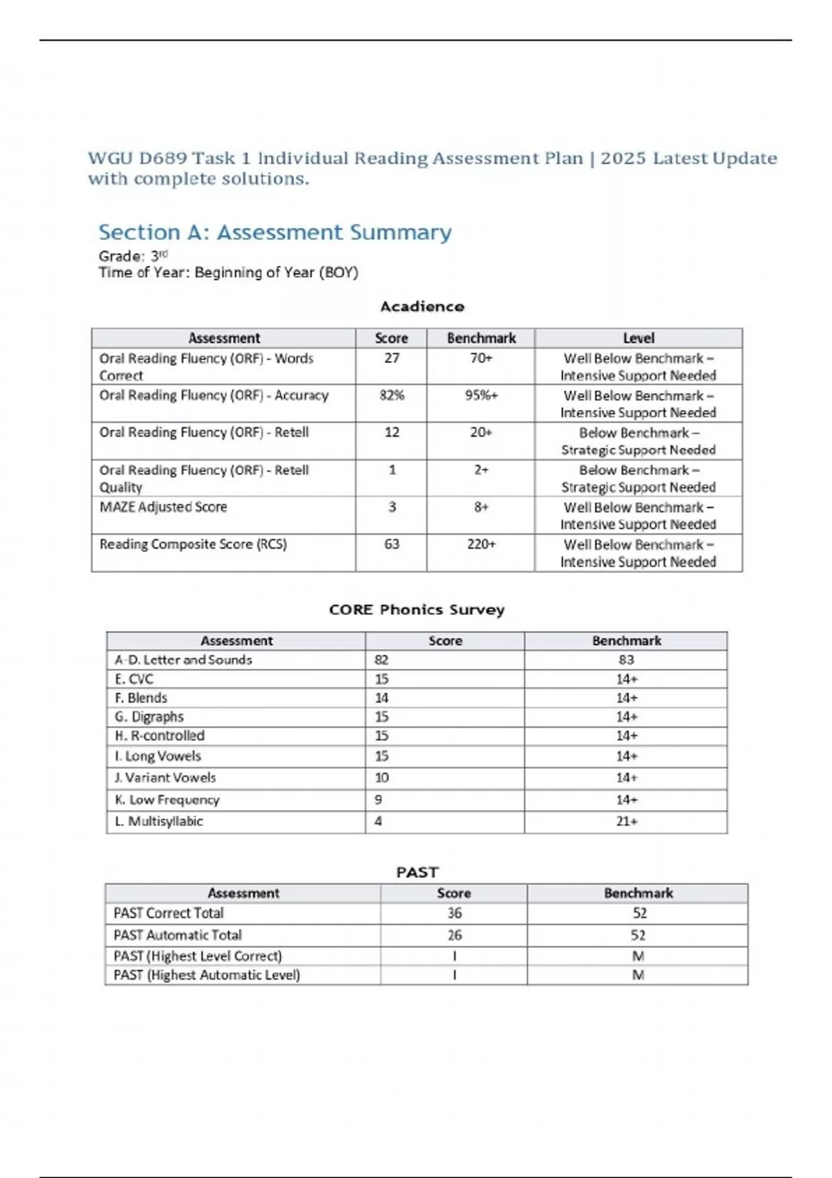 WGU D689 Task 1 Individual Reading Assessment Plan | 2025 Latest Update with complete solutions.
