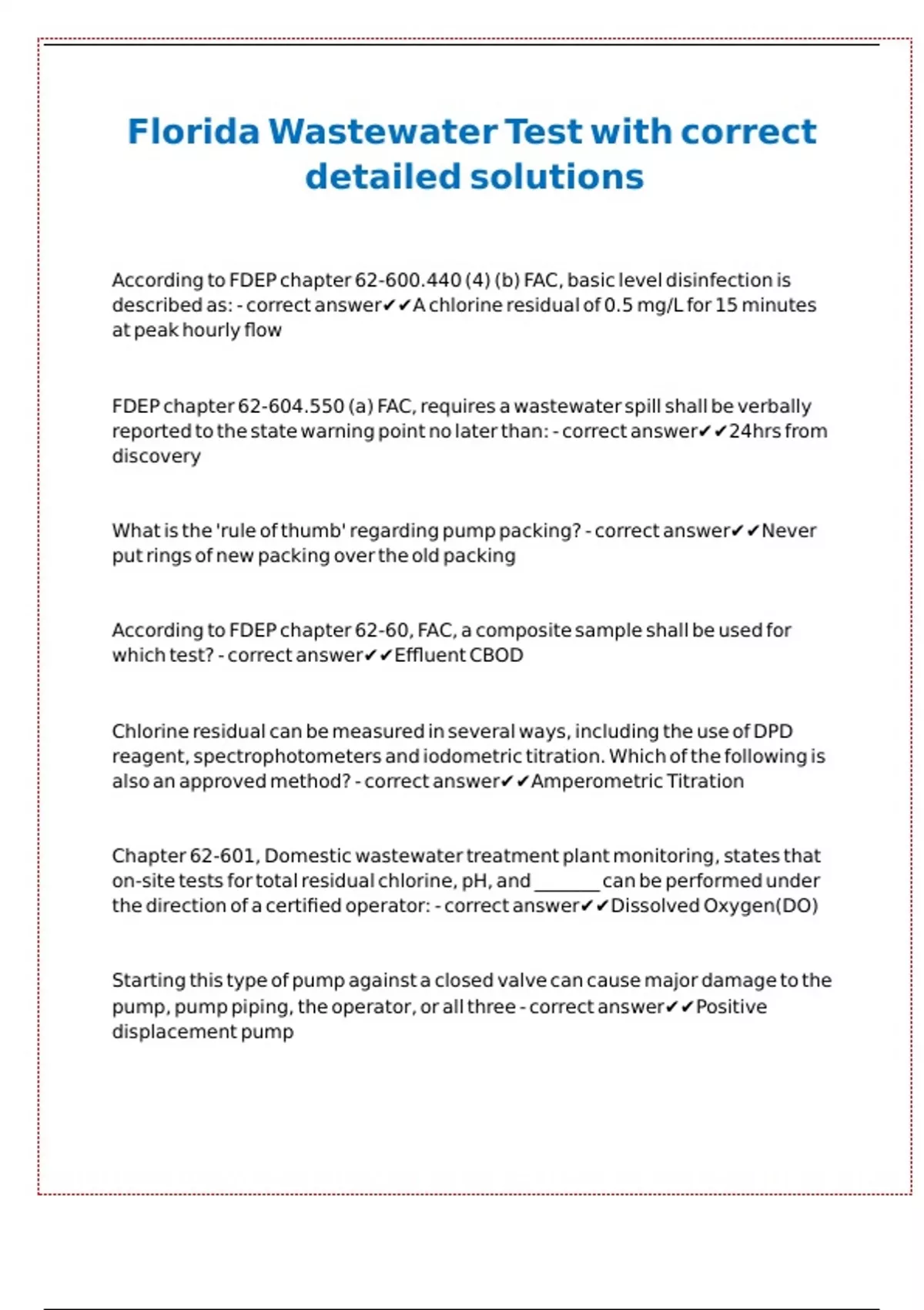 Florida Wastewater Test with correct |||| |||| |||| |||| ||||