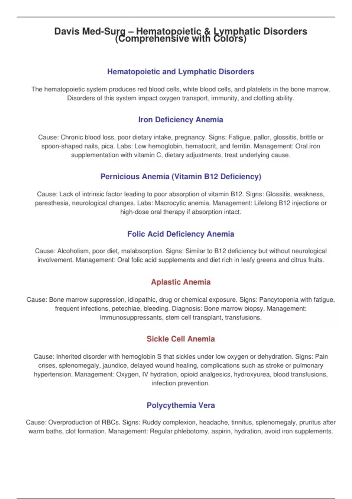 Davis Med-Surg – Hematopoietic & Lymphatic Disorders