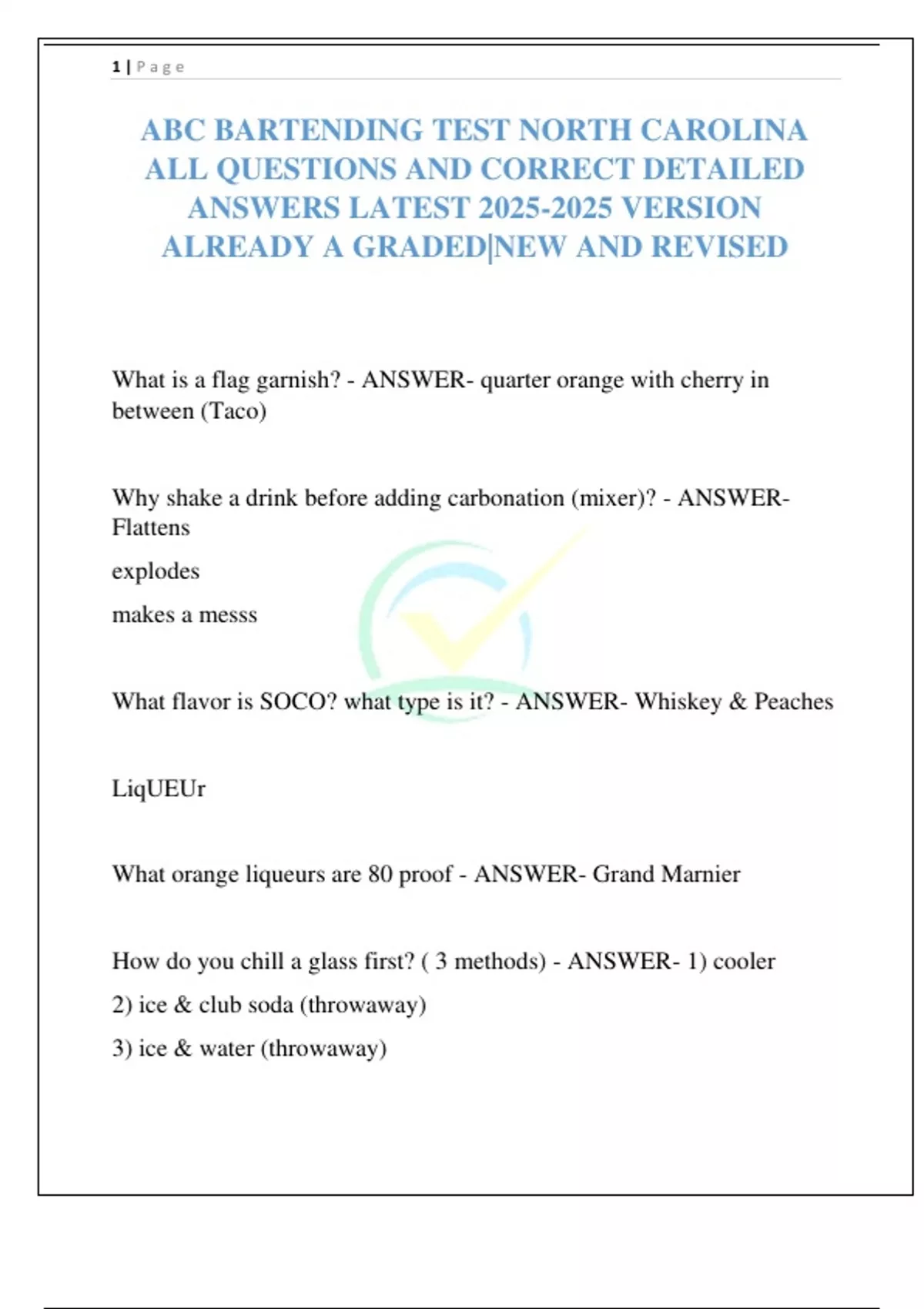 What is the garnish for all tonic drinks? - ANSWER- Lime Wedge