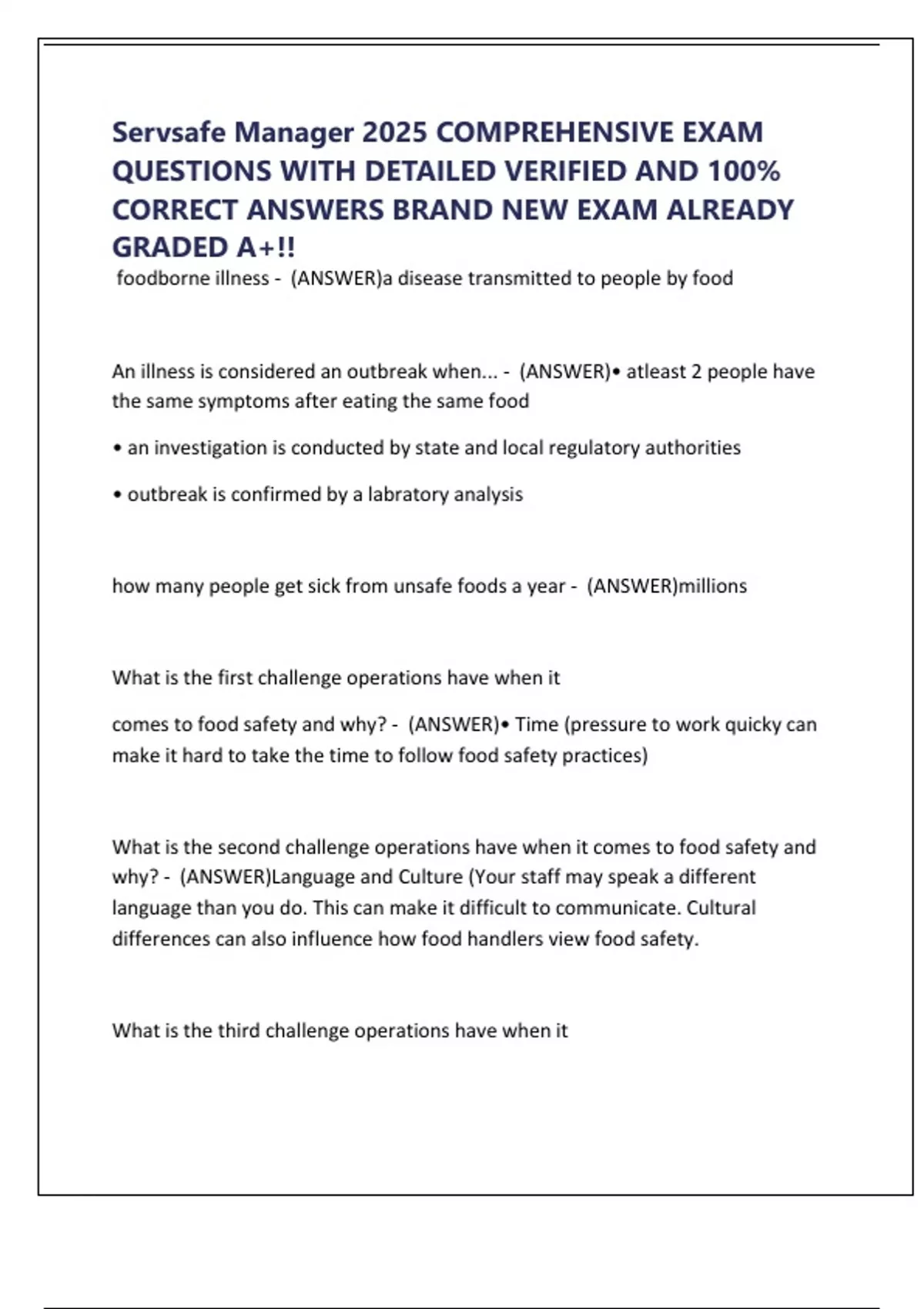 Servsafe Manager 2025 COMPREHENSIVE EXAM