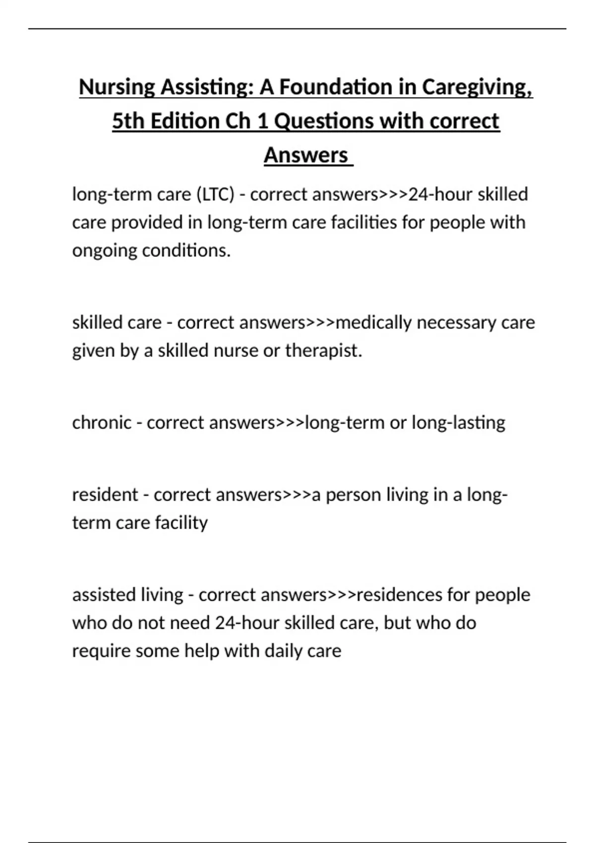 long-term care (LTC) - correct answers>>>24-hour skilled