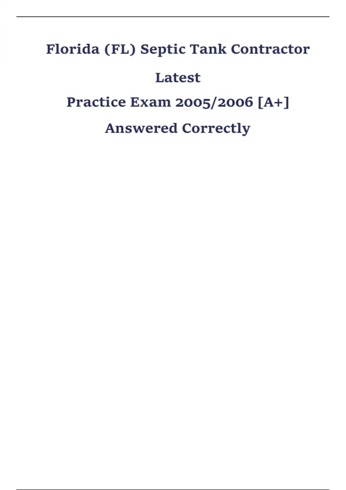 Florida (FL) Septic Tank Contractor Latest Practice Exam 2005/2006 [A+] Questions And Answers Correctly Verified
