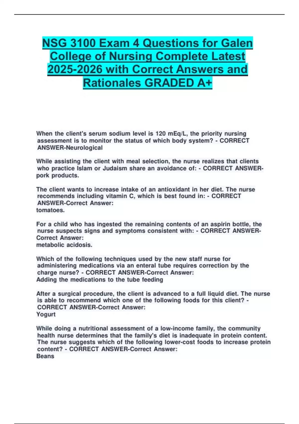 2025-2026 with Correct Answers and