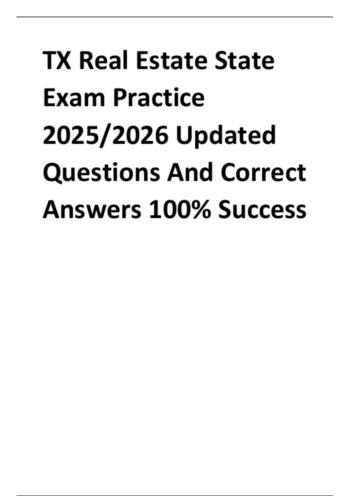 TX Real Estate State Exam Practice 2025/2026 [A+] Updated Questions And Correct Answers 100% Success