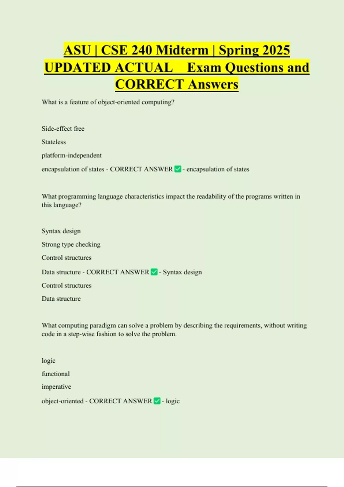 CORRECT Answers