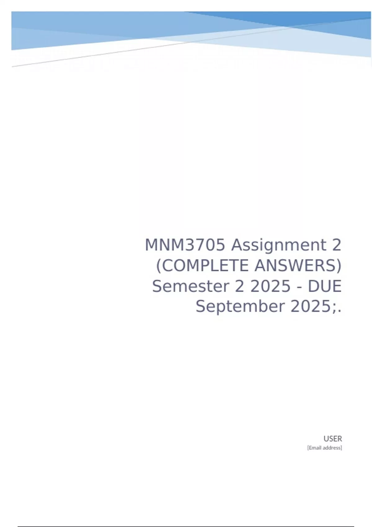 MNM3705 Assignment 2 (COMPLETE ANSWERS) Semester 2 2025 - DUE September 2025;.