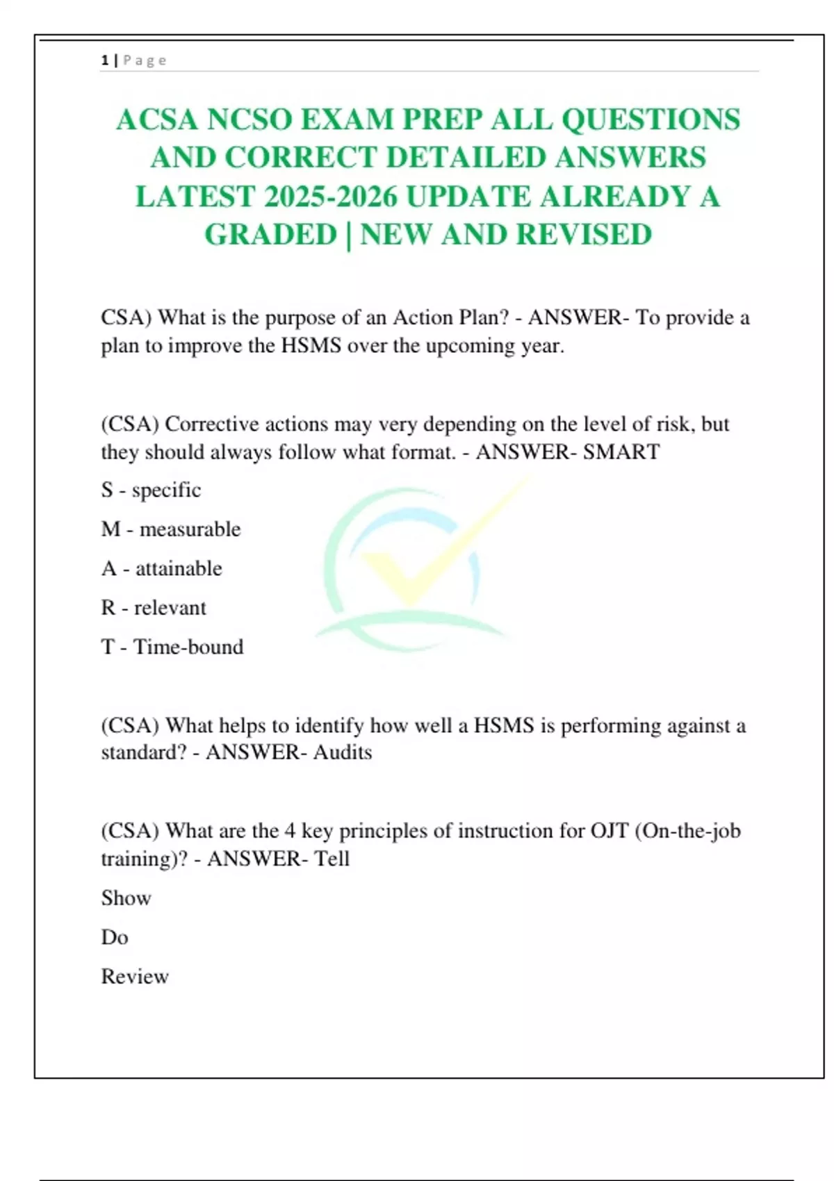 ACSA NCSO EXAM PREP ALL QUESTIONS