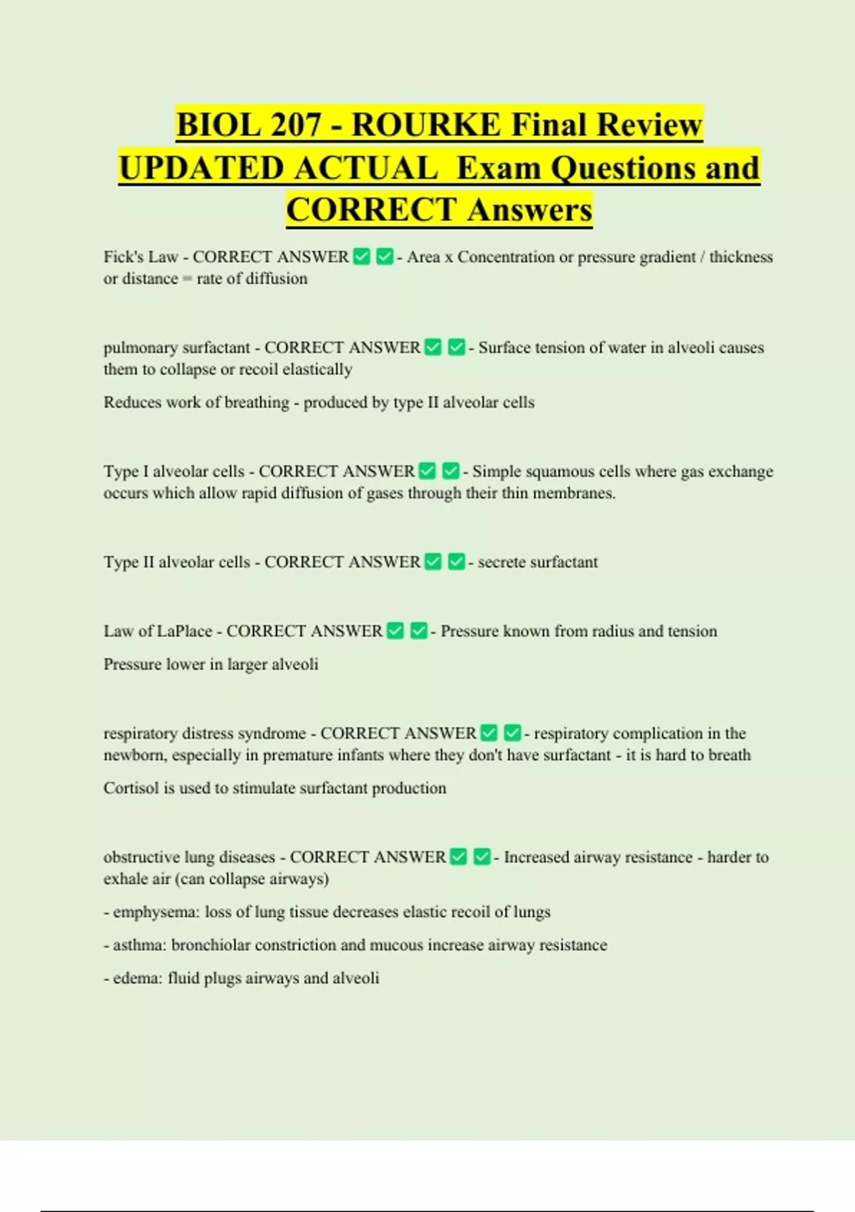 pulmonary surfactant - CORRECT ANSWER - Surface tension of water in alveoli causes