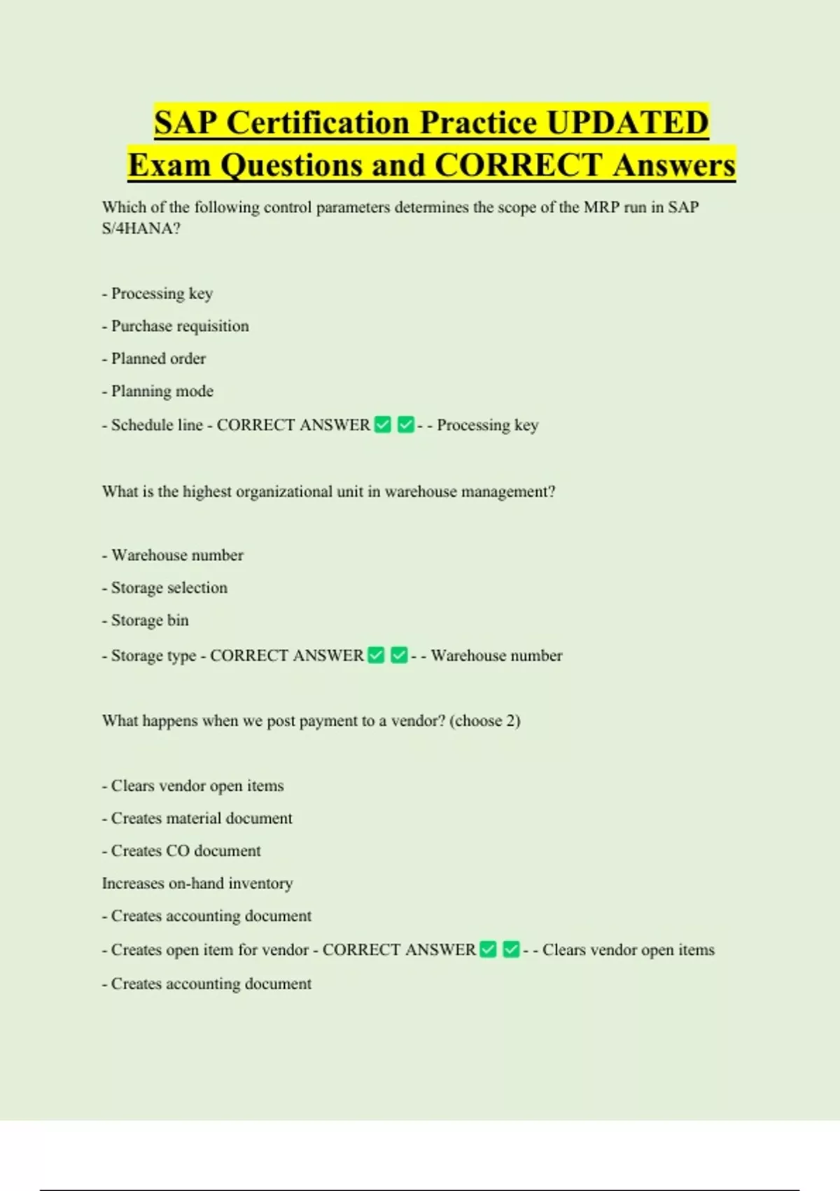 - Creates open item for vendor - CORRECT ANSWER - - Clears vendor open items