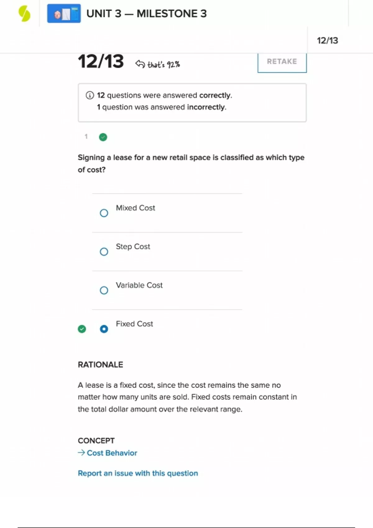 ACC 202 Managerial Accounting Milestone 3 | Score 12/13 | Southern New Hampshire University