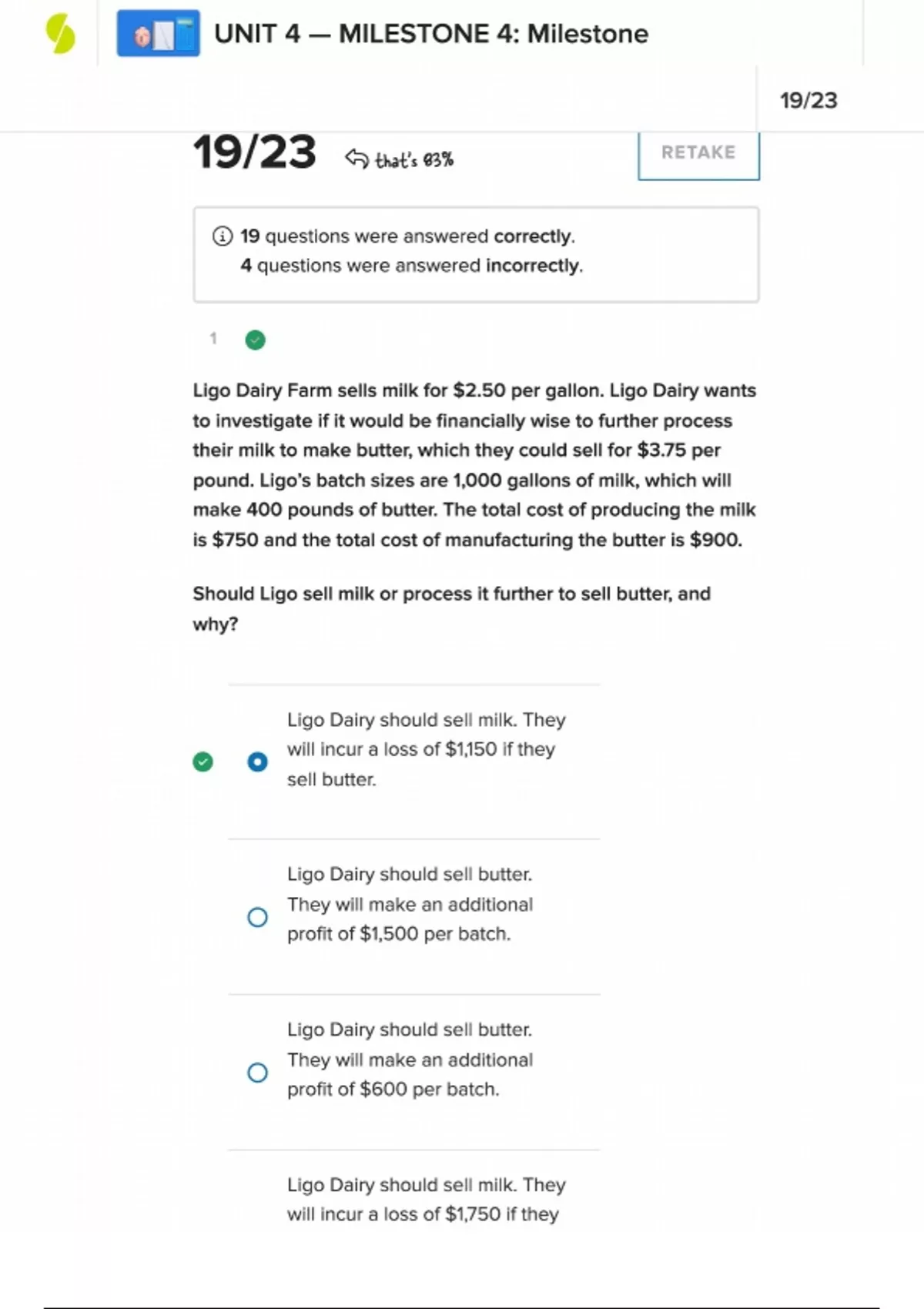batch from milk $2,500. $1,500 — $2,500 = ($1,000