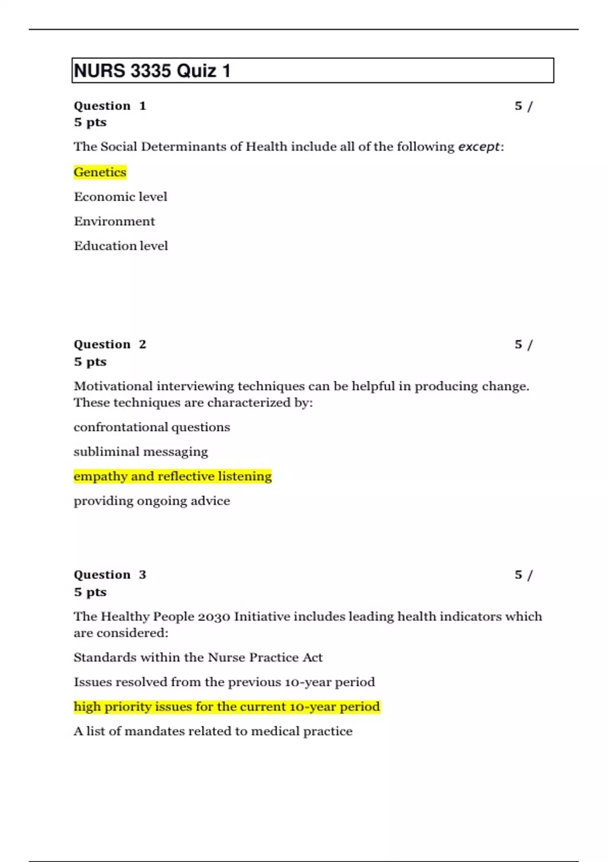 NURS 3335 Quiz 1