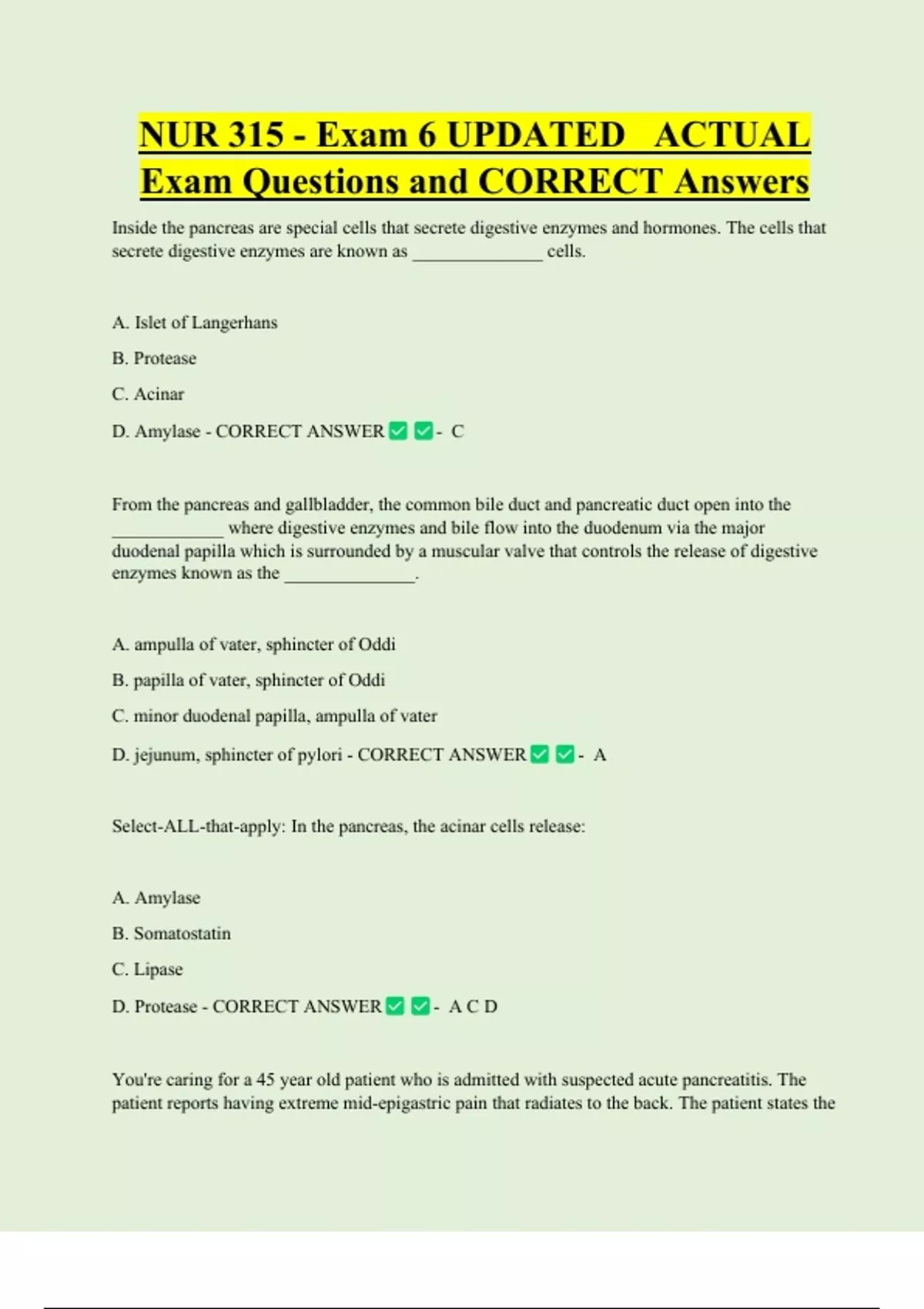 Exam Questions and CORRECT Answers