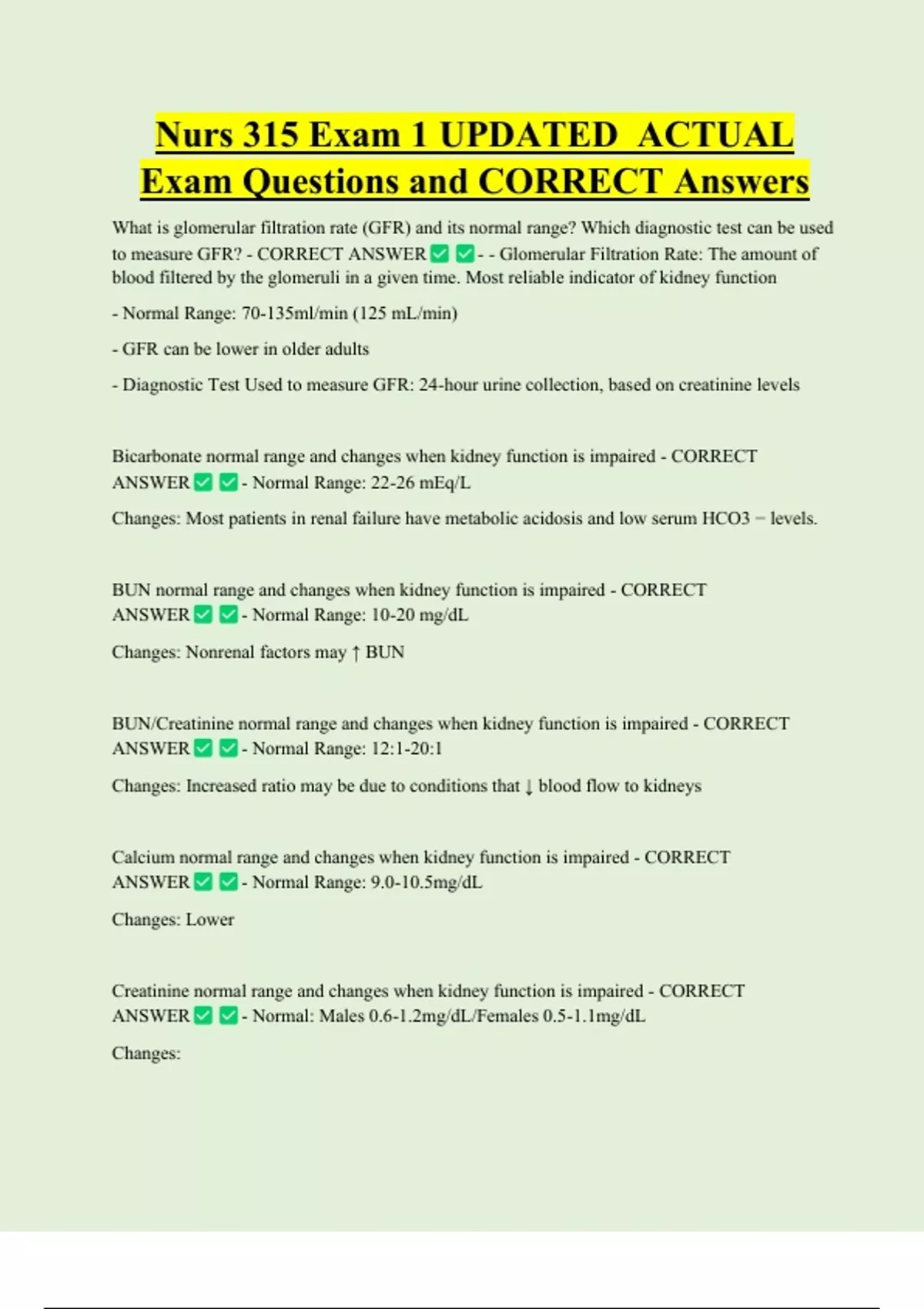 Calcium normal range and changes when kidney function is impaired - CORRECT