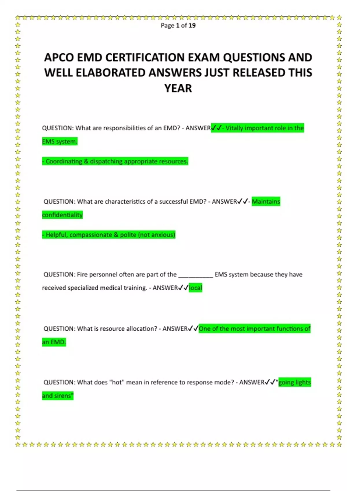APCO EMD CERTIFICATION EXAM QUESTIONS AND