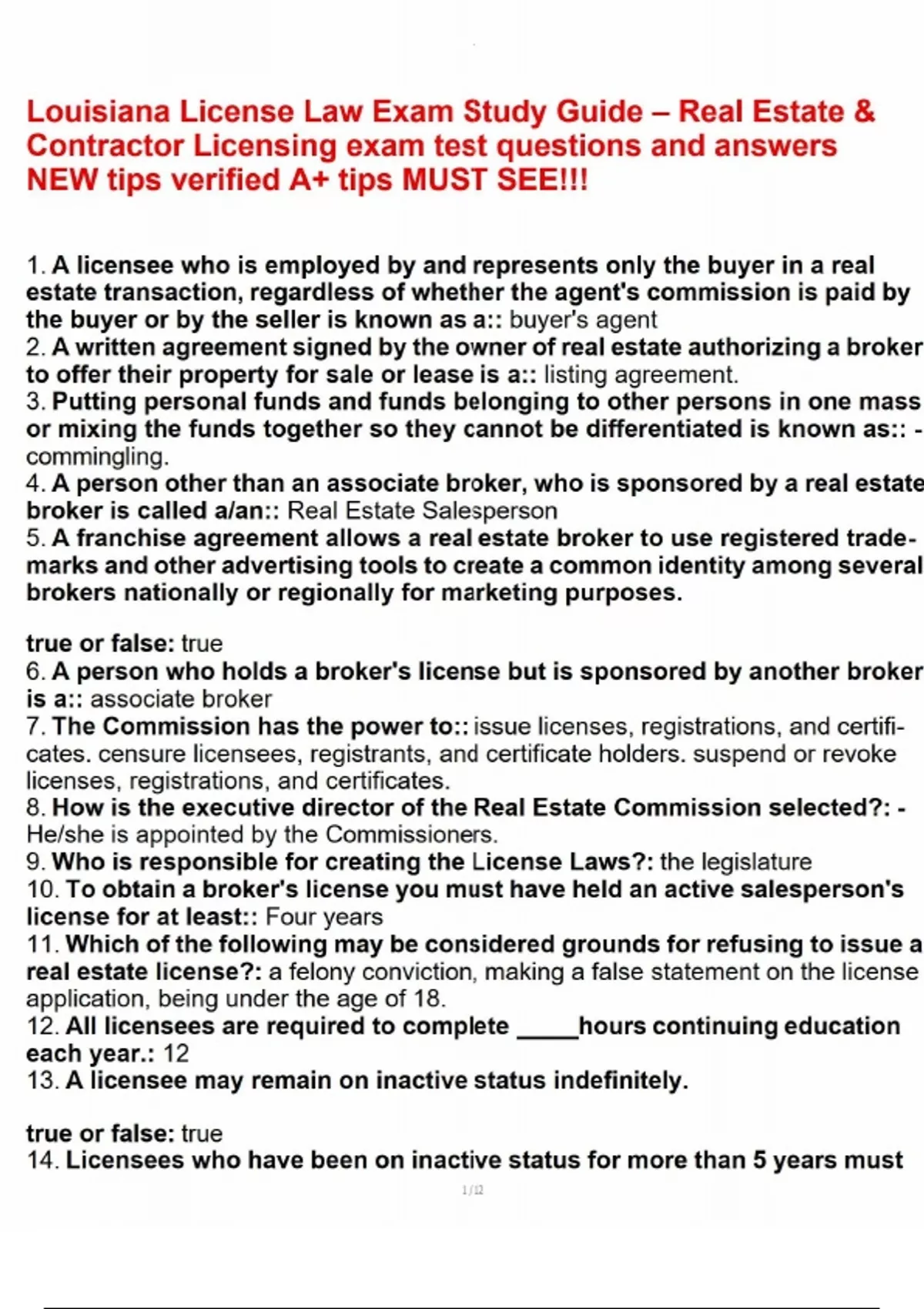 Louisiana License Law Exam Study Guide – Real Estate & Contractor Licensing exam test questions and answers NEW tips verified A+ tips MUST SEE!!!.pdf Louisiana License Law Exam Study Guide – Real Estate & Contractor Licensing exam test questions and answers NEW tips verified A+ tips MUST SEE!!!.pdf Louisiana License Law Exam Study Guide – Real Estate & Contractor Licensing exam test questions and answers NEW tips verified A+ tips MUST SEE!!!.pdf
