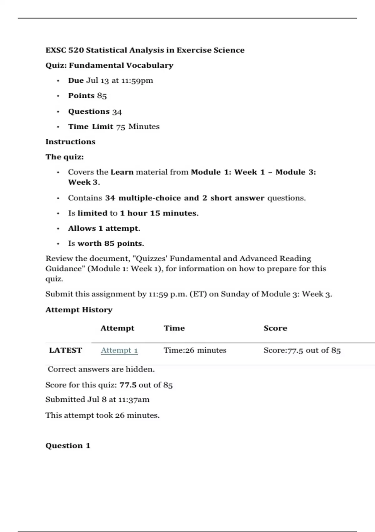 LATEST Attempt 1 Time:26 minutes Score:77.5 out of 85