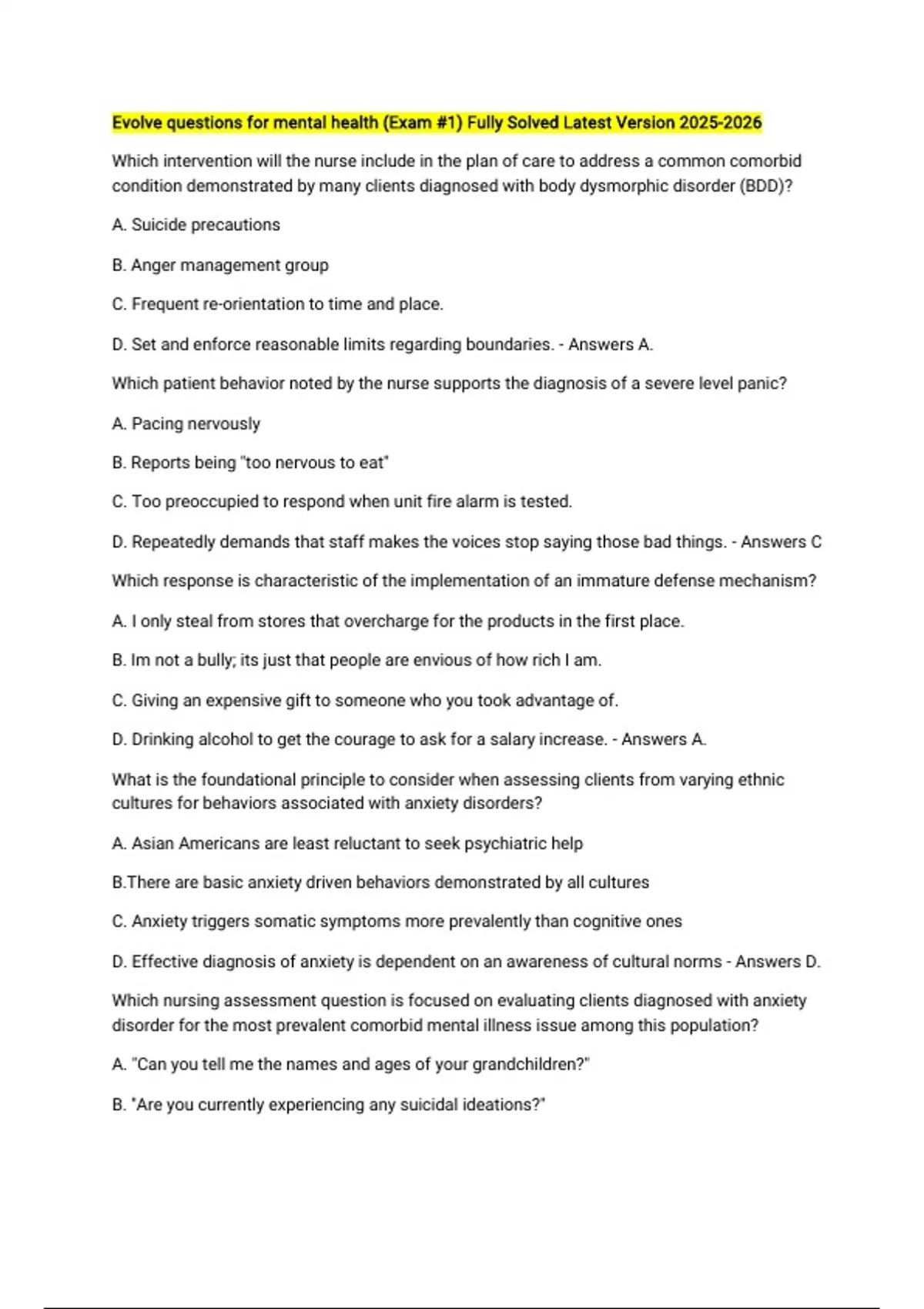 D."What was the client's reasoning for the violent behaviors?" - Answers C.