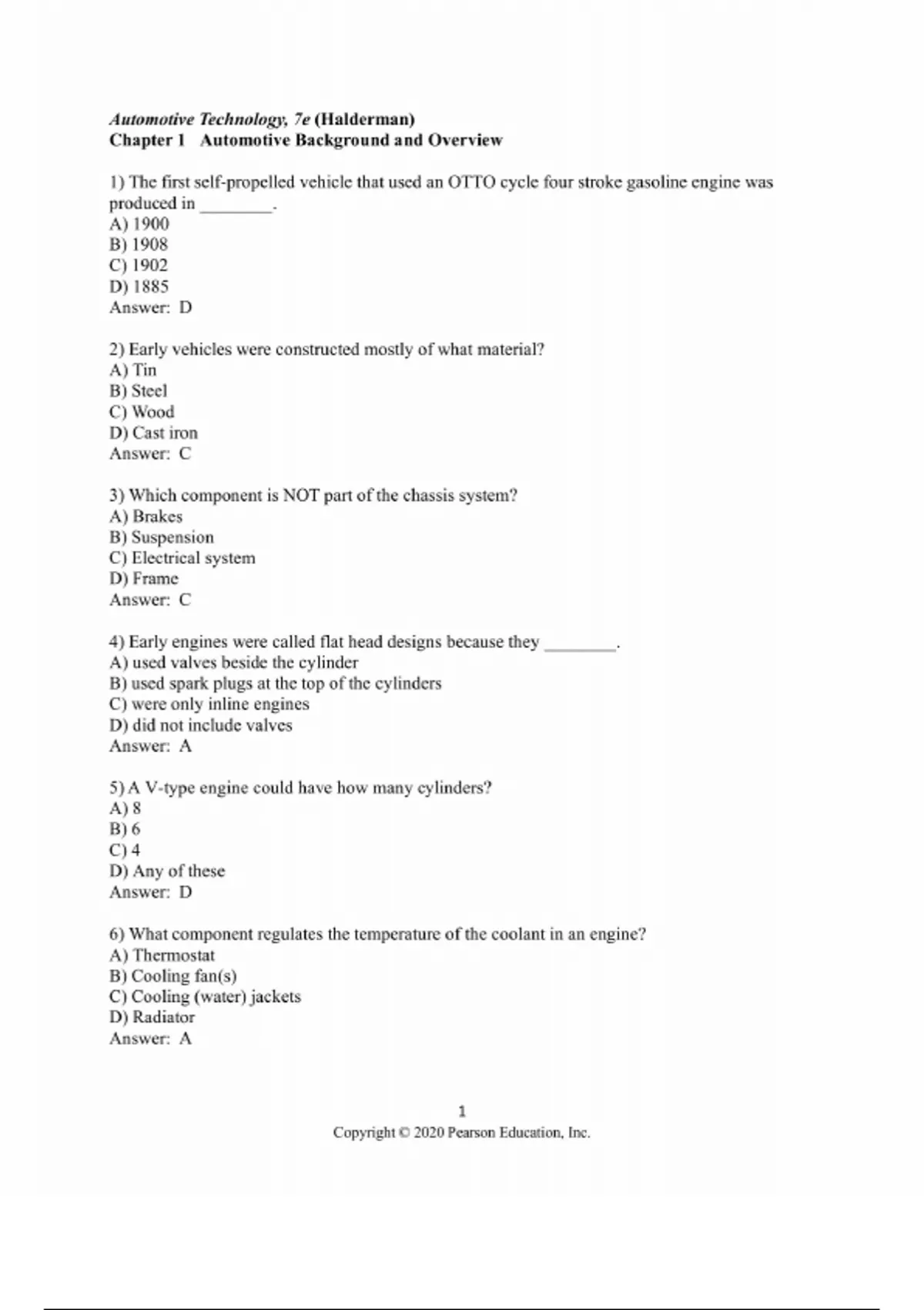 Test Bank for Automotive Technology: Principles, Diagnosis, and Service 7th Edition,(Halderman, 2023), Chapter 1-136 | All Chapters