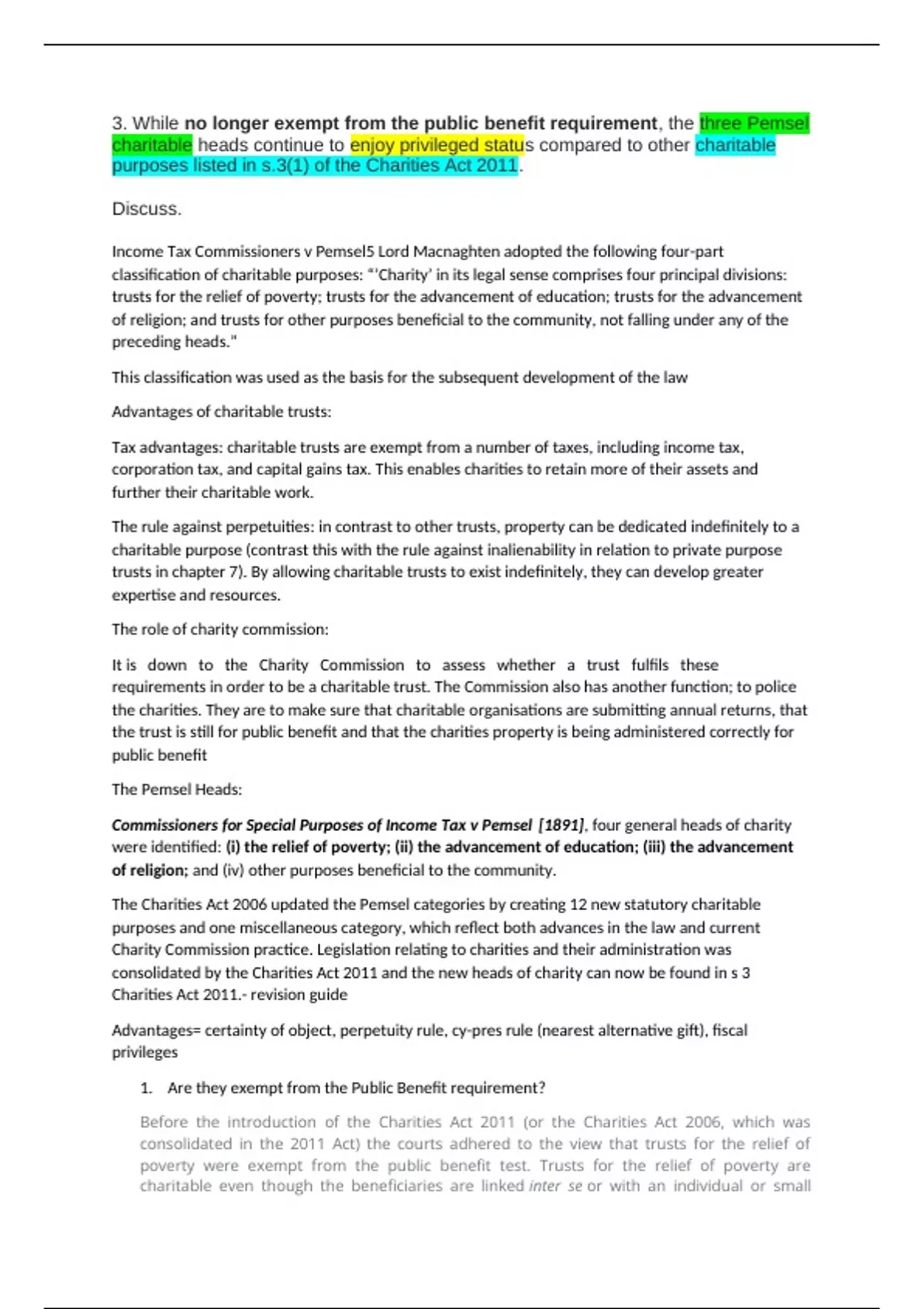 Trusts Law Essay on charitable trusts from 2nd year university exam