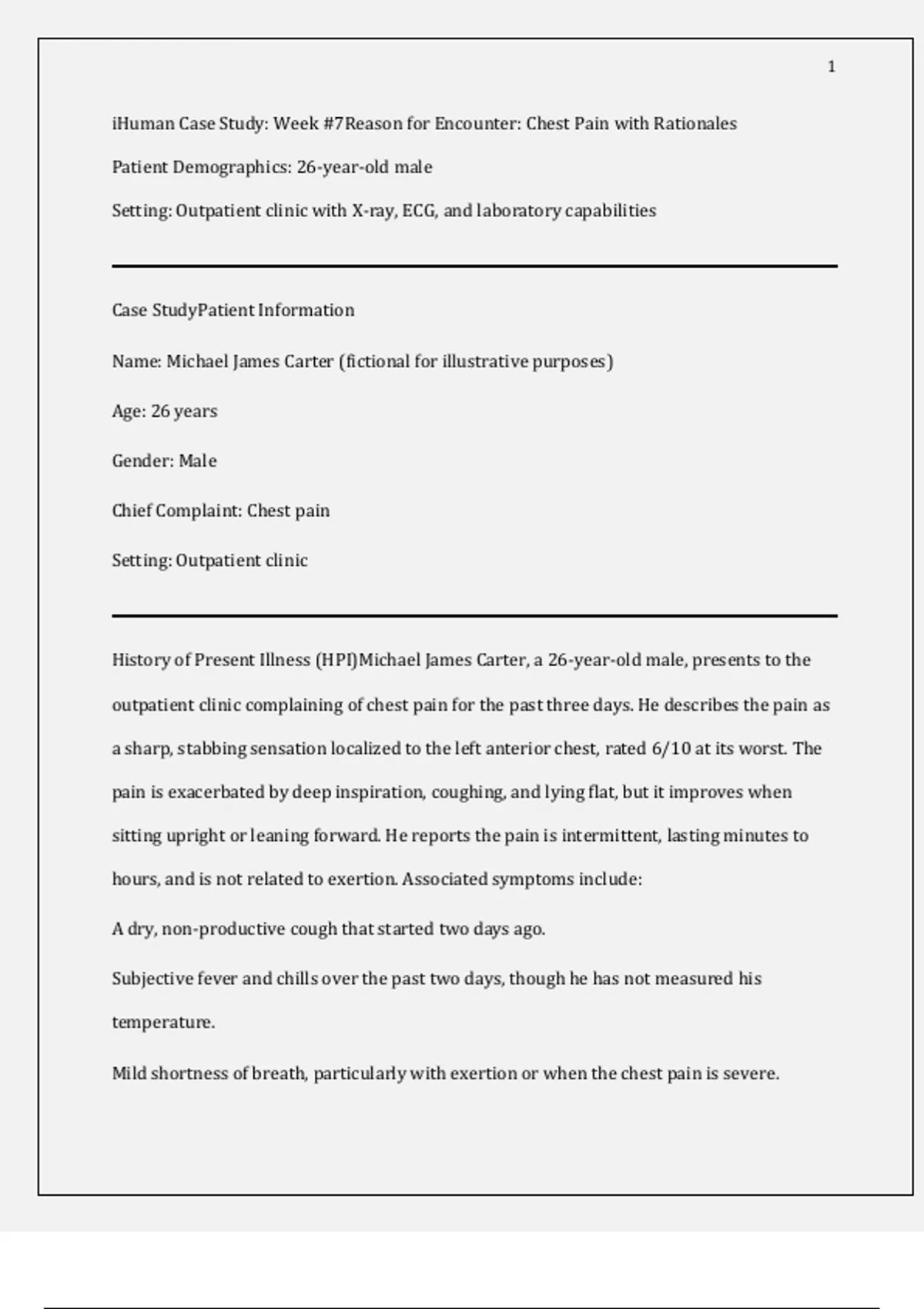 iHuman Case Study: Week #7Reason for Encounter: Chest Pain with Rationales