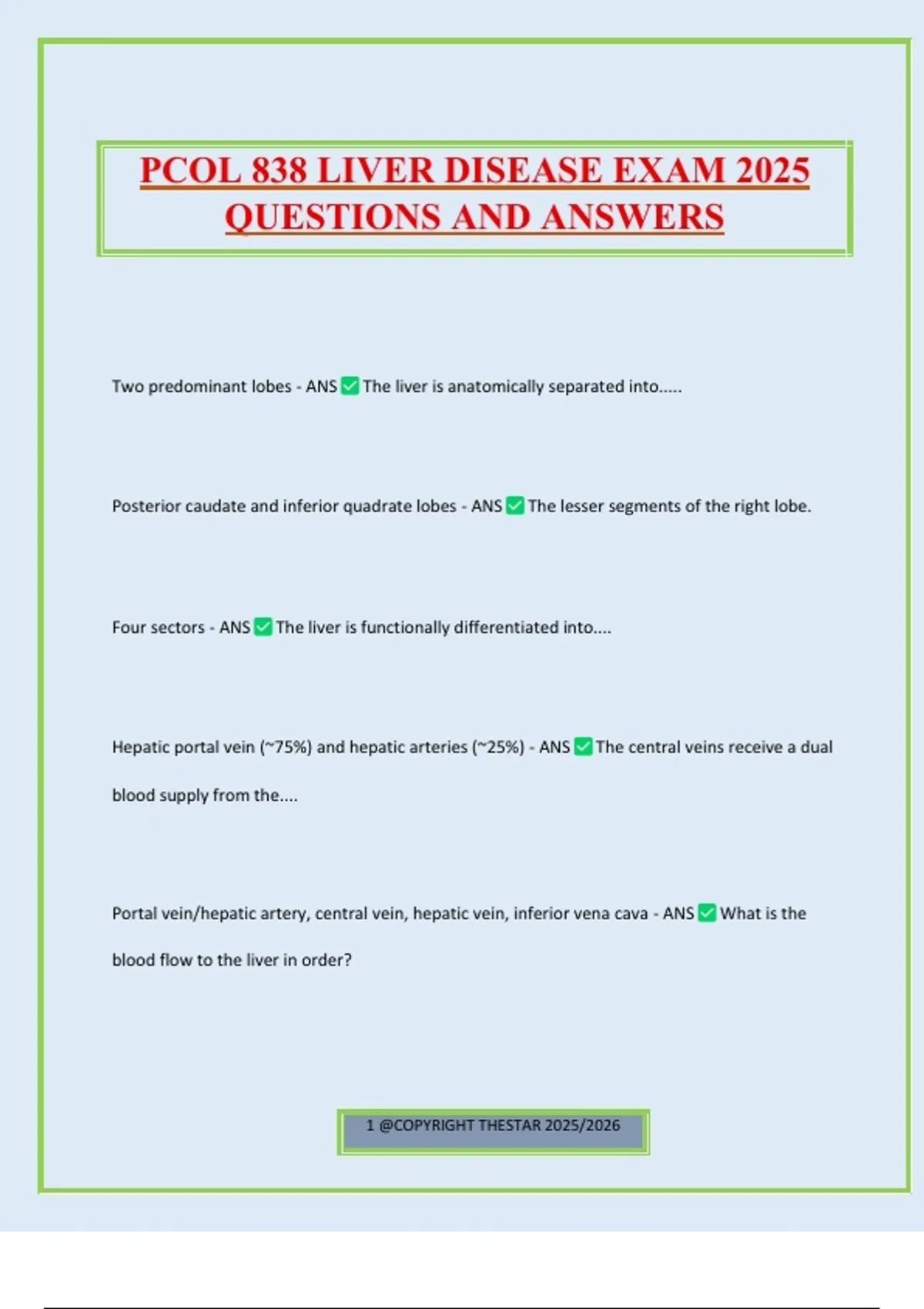 Two predominant lobes - ANS The liver is anatomically separated into.....