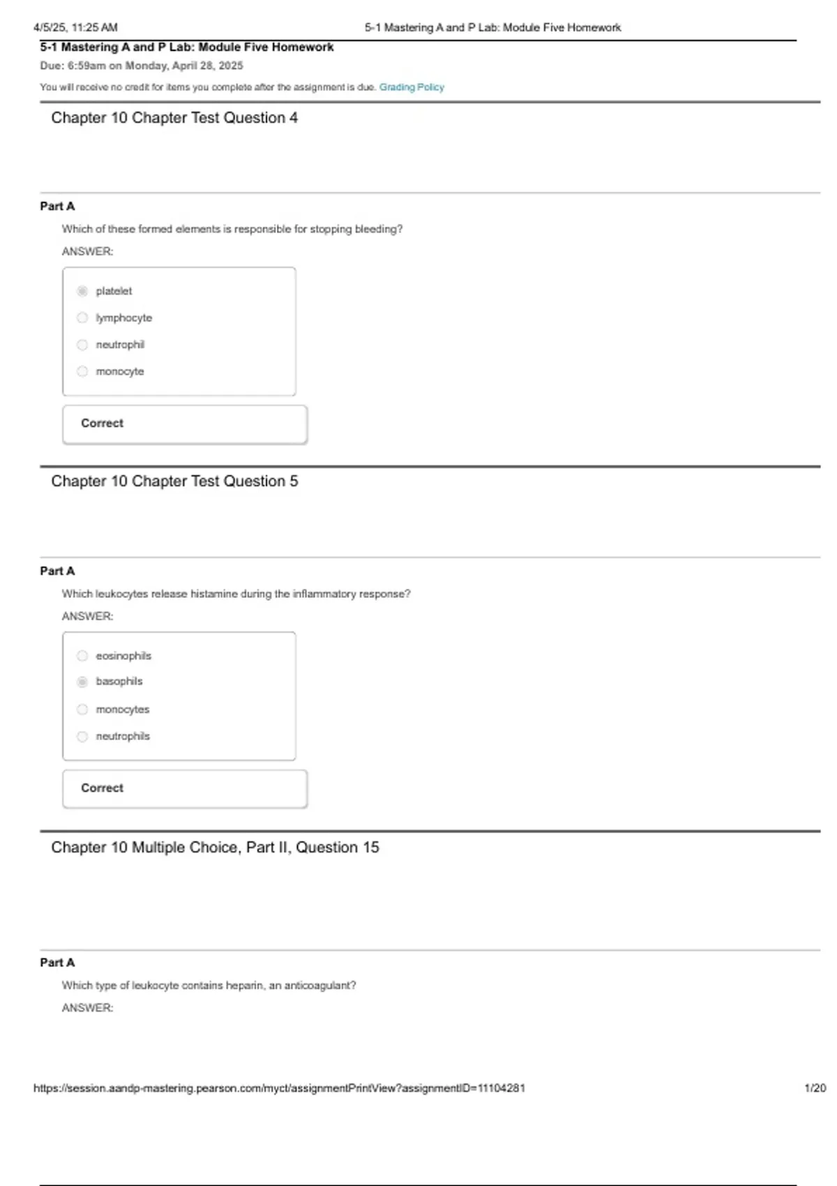 , 4/5/25, 11:25 AM 5-1 Mastering A and P Lab: Module Five Homework