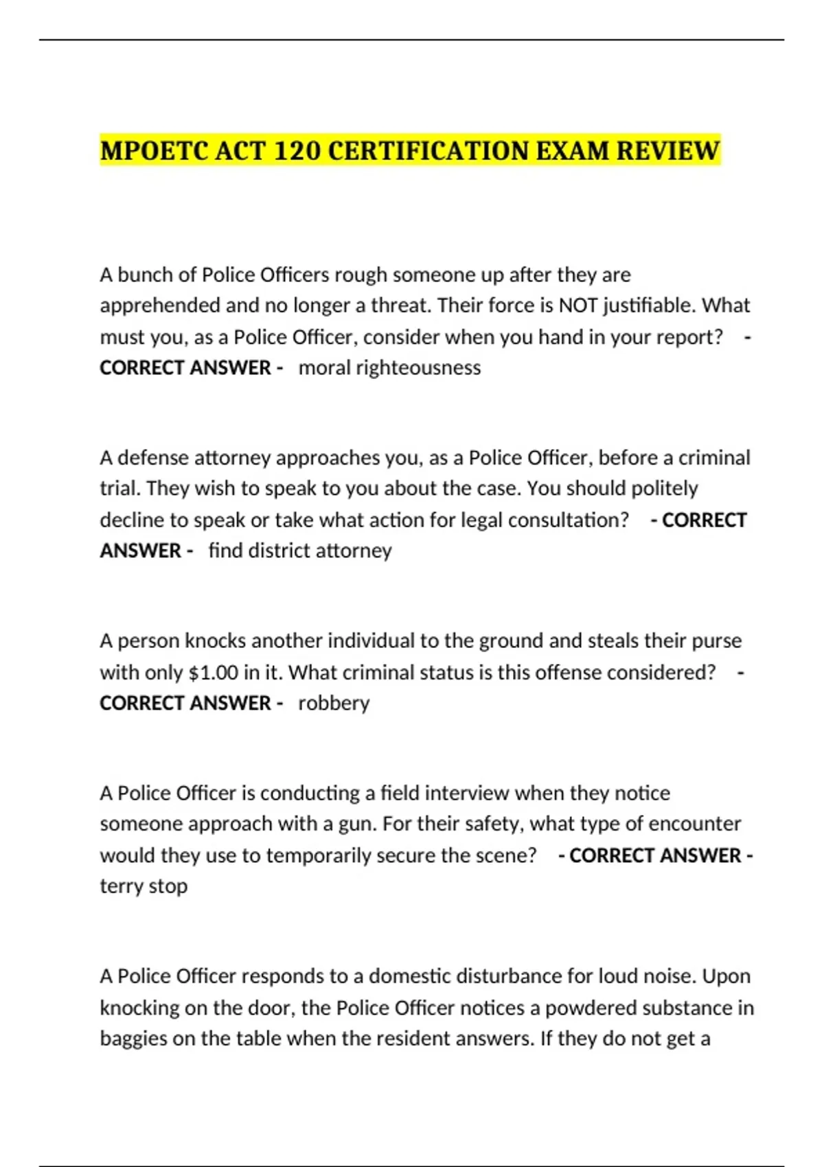 MPOETC ACT 120 CERTIFICATION EXAM REVIEW