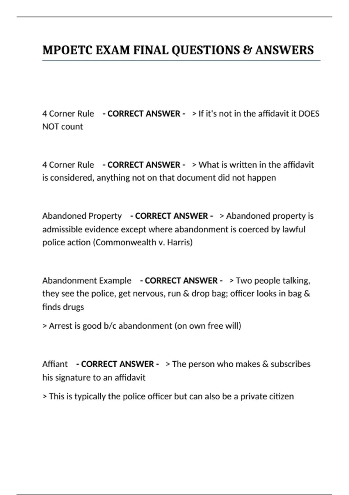 4 Corner Rule - CORRECT ANSWER - > What is written in the affidavit