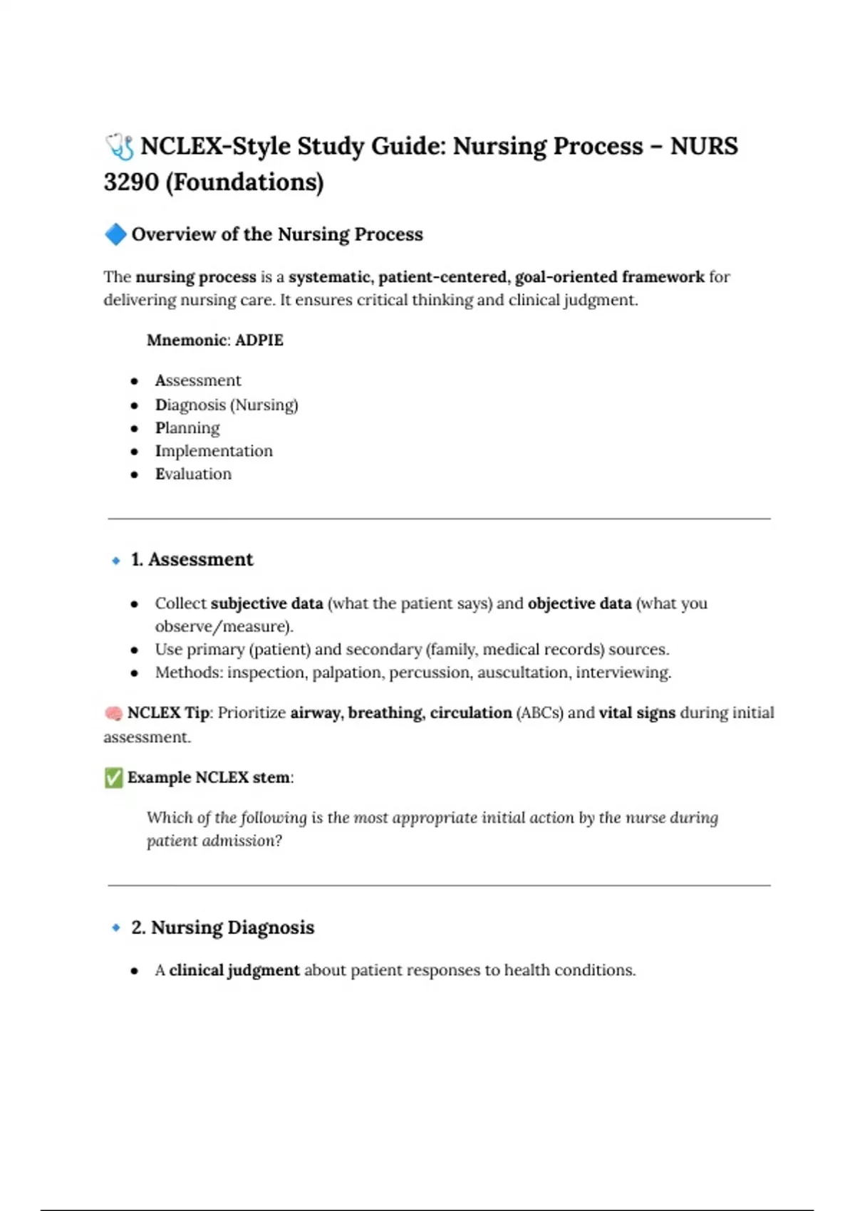 The nursing process is a systematic, patient-centered, goal-oriented framework for