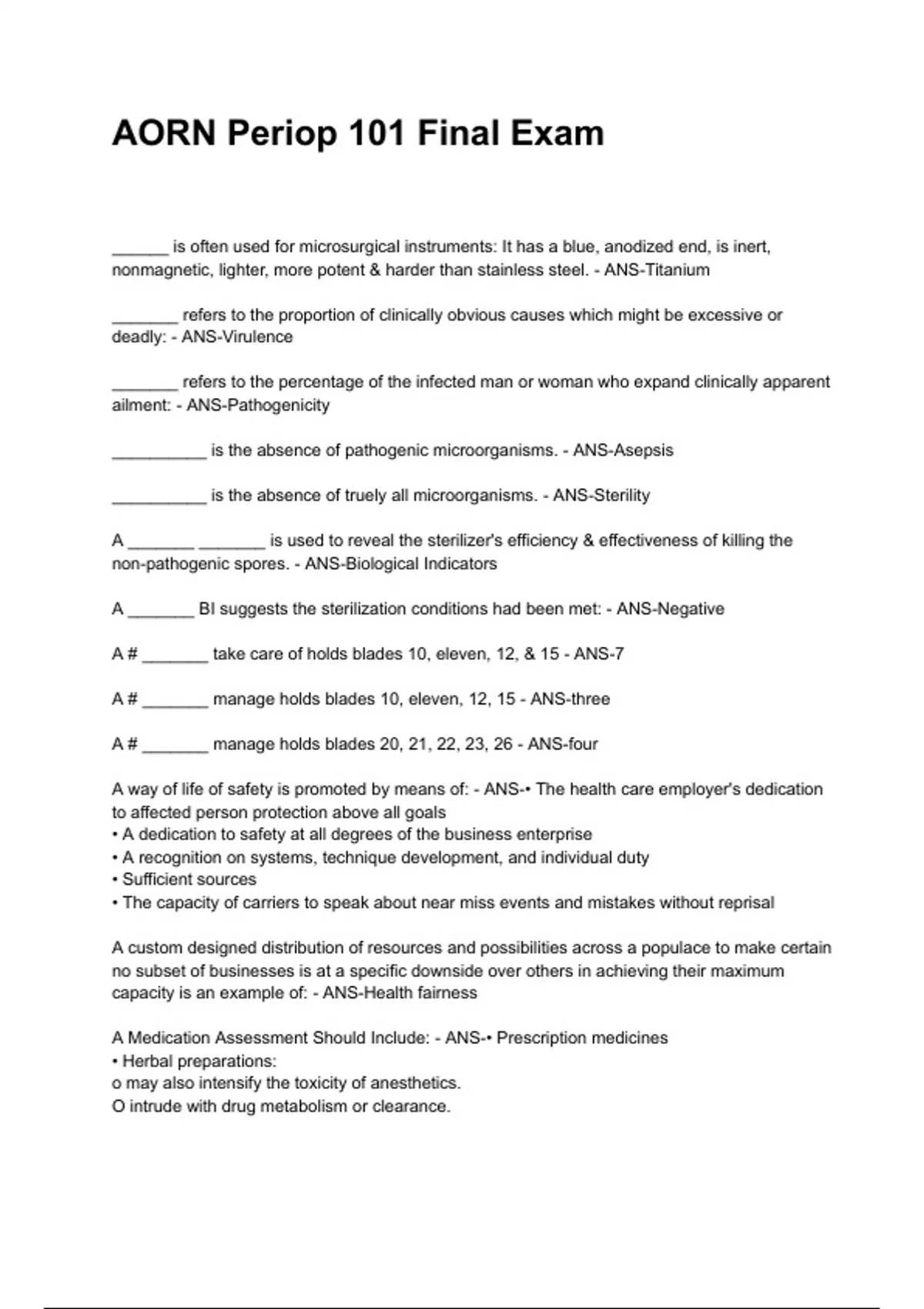 __________ is the absence of truely all microorganisms. - ANS-Sterility