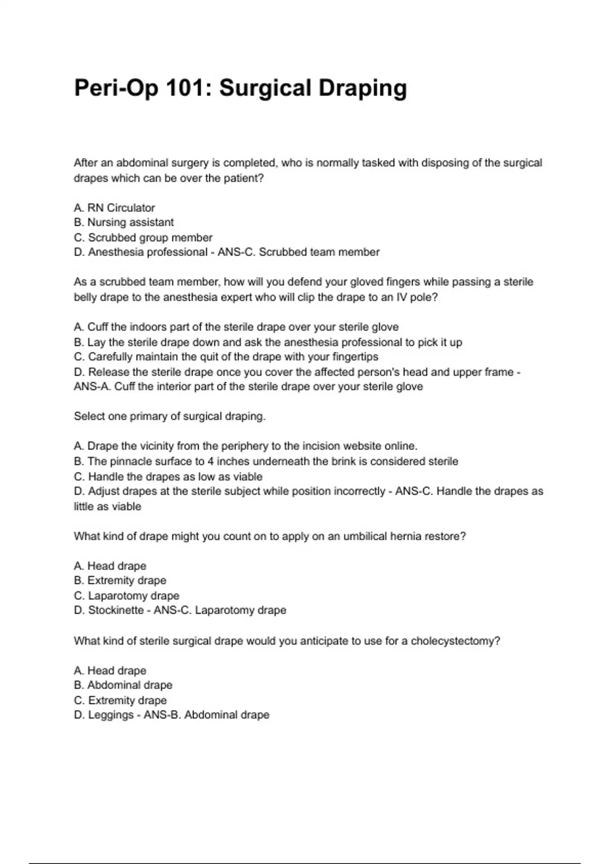Peri-Op 101: Surgical Draping NEWEST 2025/2026 ACTUAL EXAM COMPLETE QUESTIONS AND CORRECT DETAILED ANSWERS (VERIFIED ANSWERS) |ALREADY GRADED A+||BRAND NEW!!