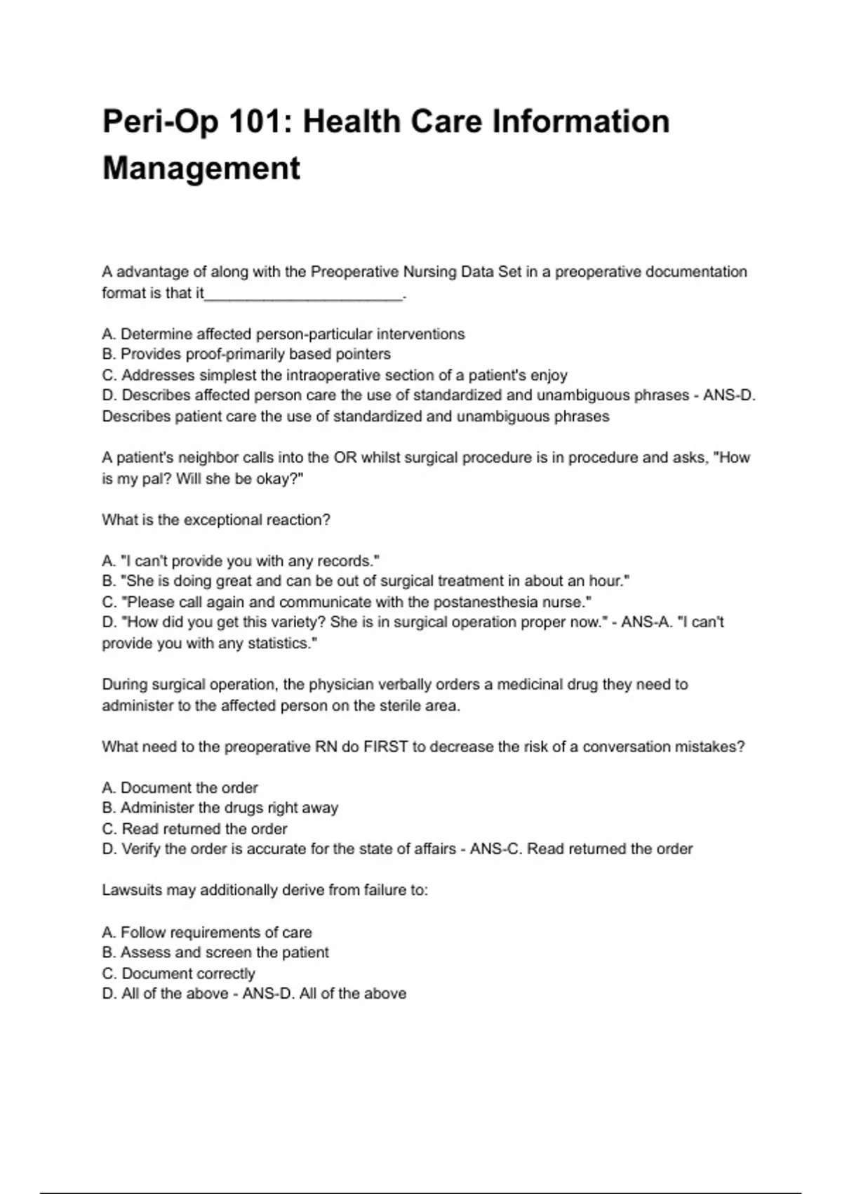 Peri-Op 101: Health Care Information