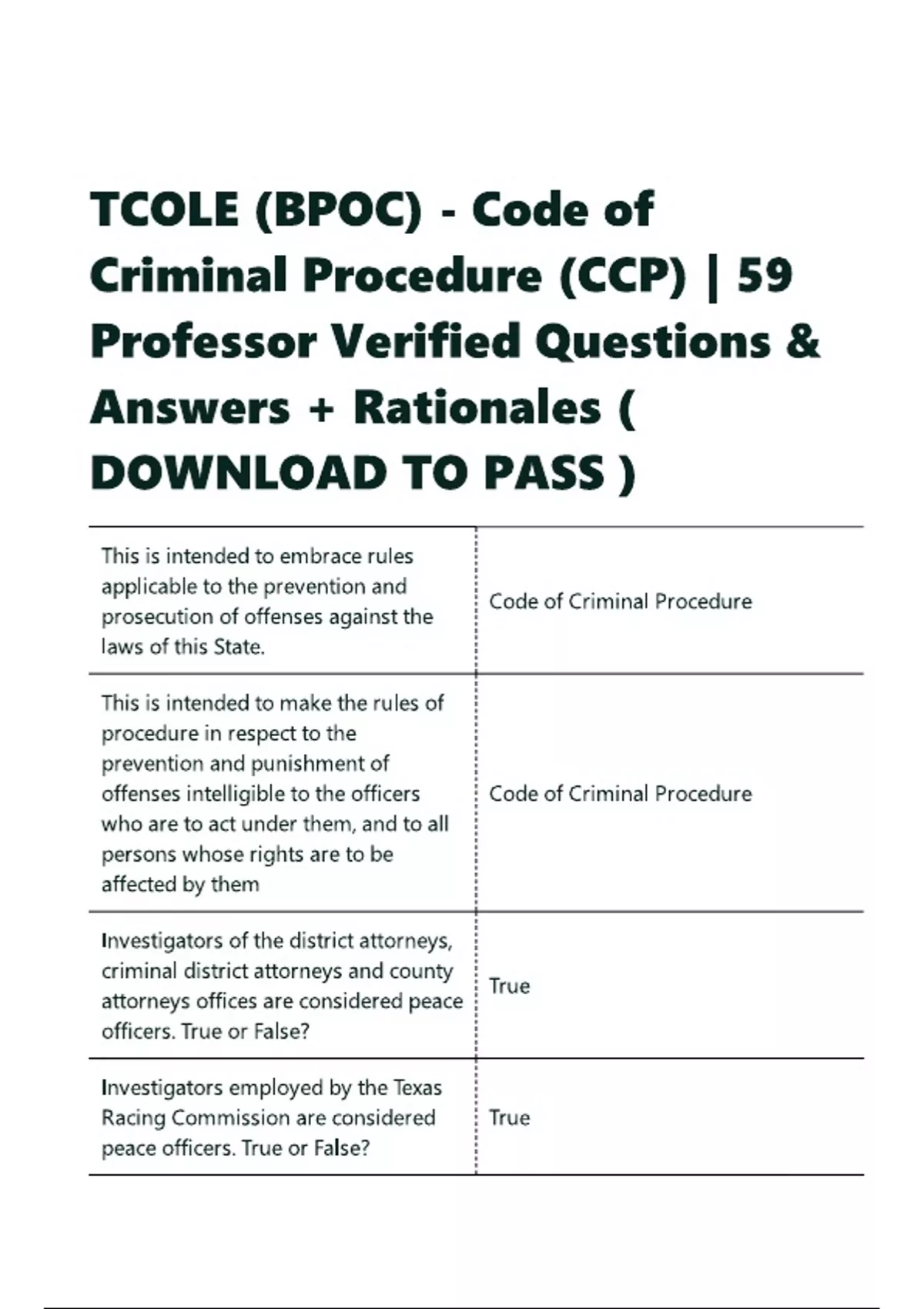 TCOLE (BPOC) - Code of Criminal Procedure (CCP) | 59 Professor Verified Questions & Answers + Rationales