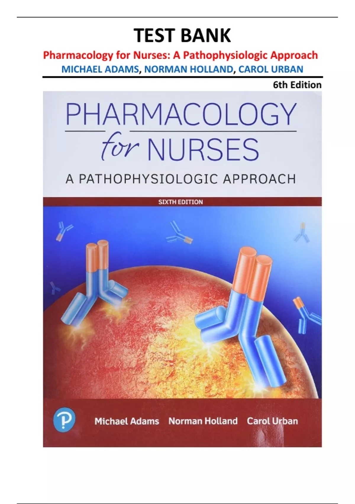 The Test Bank for Pharmacology for Nurses: A Pathophysiologic Approach, 6th Edition by Michael Adams, Norman Holland, and Carol Urban provides a complete set of exam-style questions with verified answers. Designed to reinforce key pharmacology principles, this resource helps nursing students master drug classifications, mechanisms, and safe medication administration for effective learning and exam success.