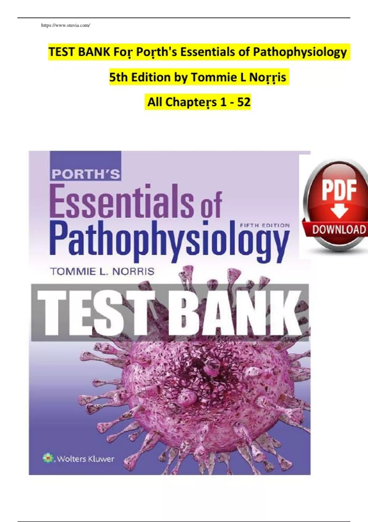 TEST BANK For Porth's Essentials of Pathophysiology 5th Edition by Tommie L Norris All Chapters 1 - 52
