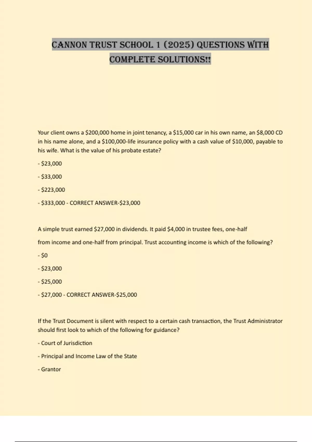 CANNON TRUST SCHOOL 1 (2025) QUESTIONS WITH
