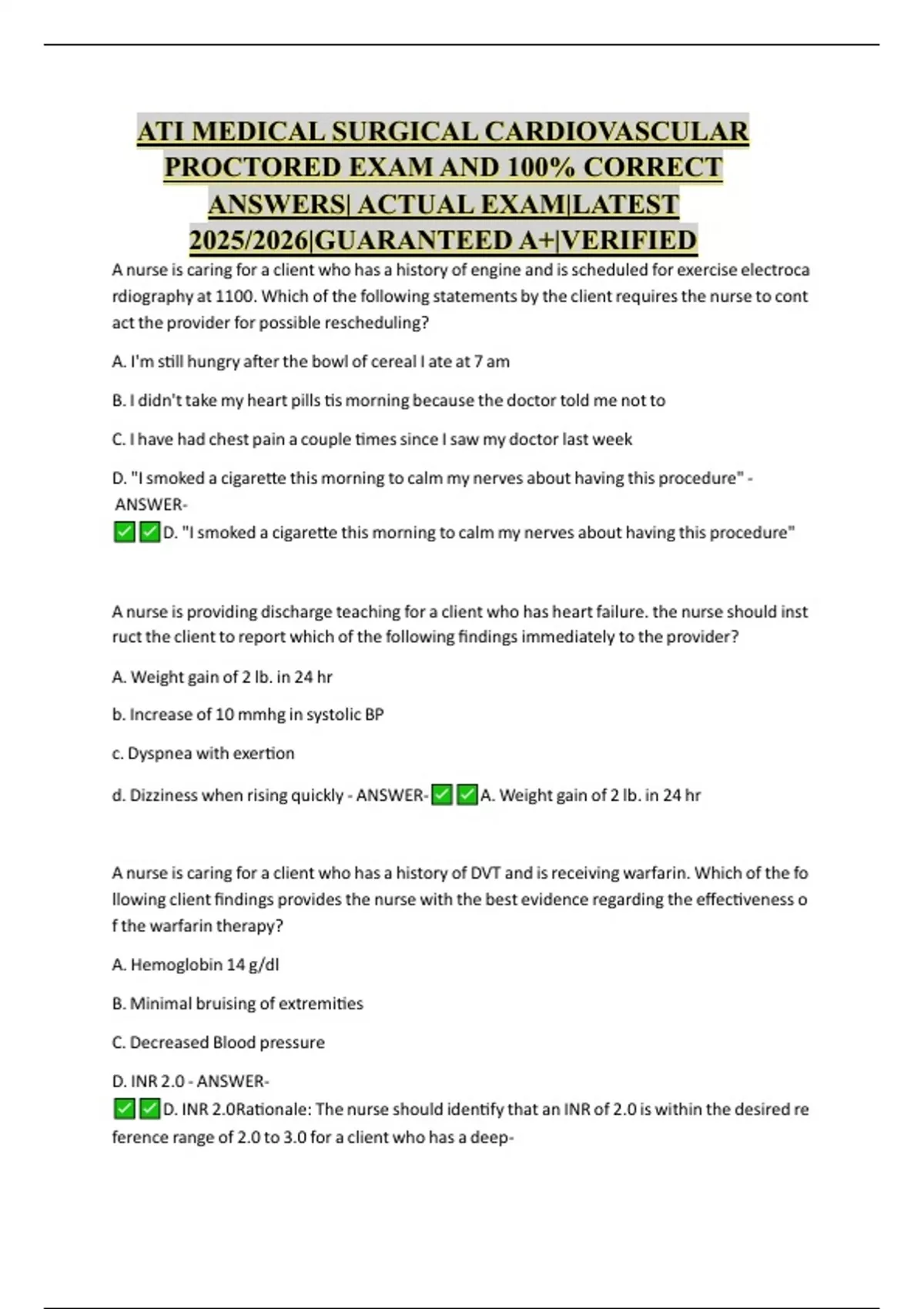 ATI MEDICAL SURGICAL CARDIOVASCULAR