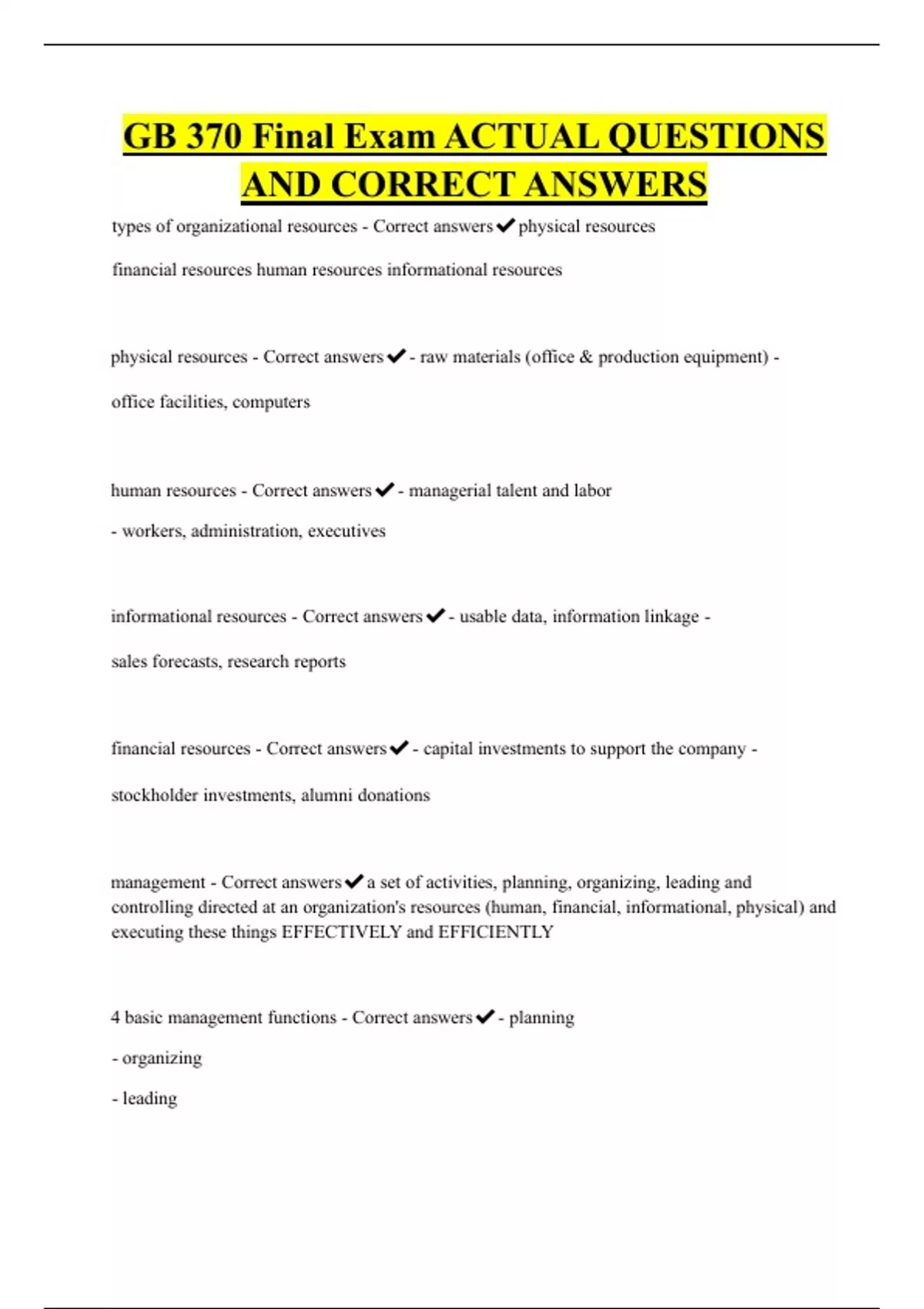 management - Correct answers✔a set of activities, planning, organizing, leading and