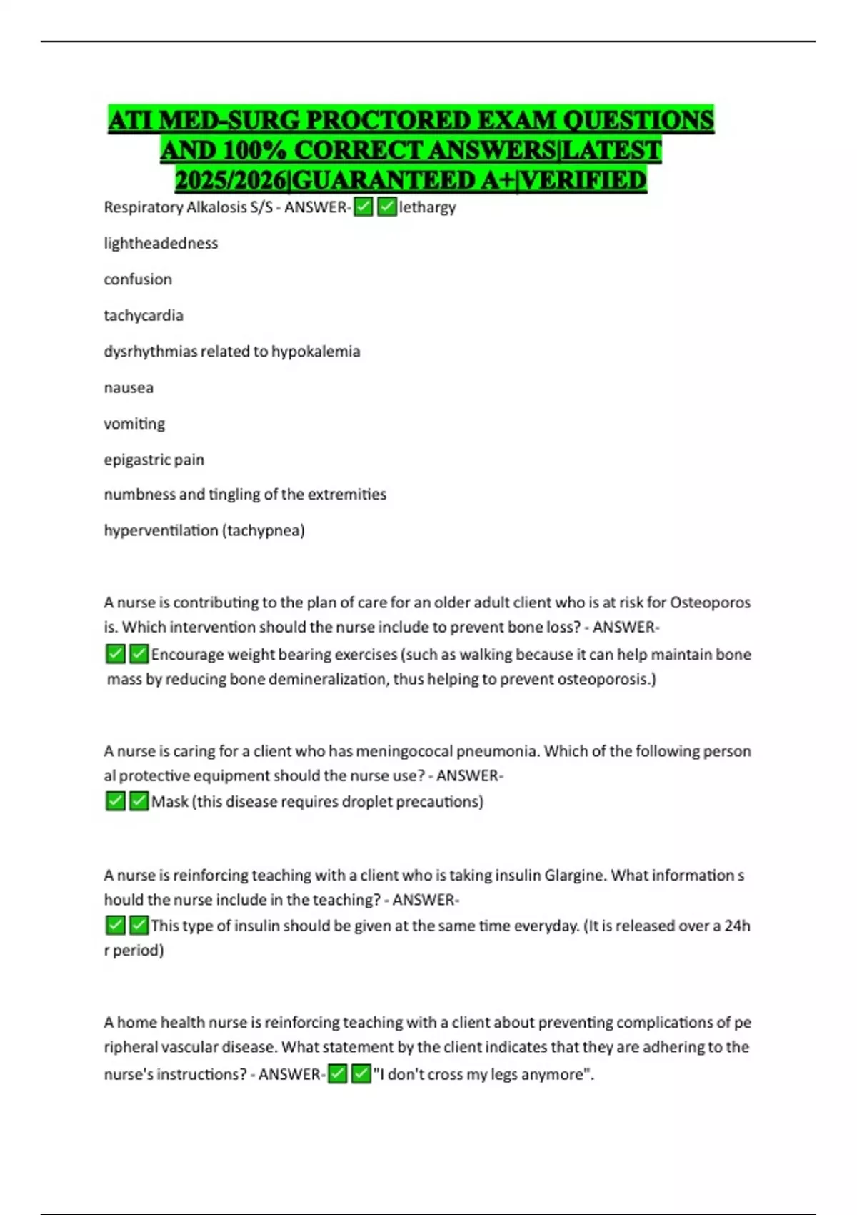 ATI MEDICAL SURGICAL PROCTORED EXAM AND 100% CORRECT ANSWERS| ACTUAL EXAM|LATEST 2025/2026|GUARANTEED A+|VERIFIED