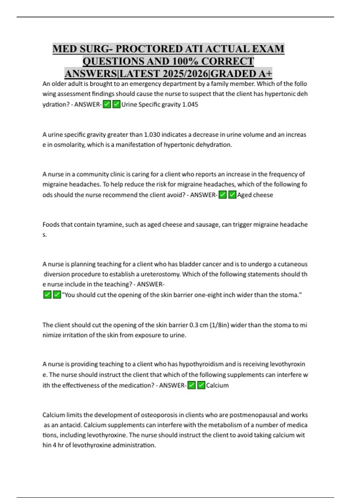MED SURG- PROCTORED ATI ACTUAL EXAM QUESTIONS AND 100% CORRECT ANSWERS|LATEST 2025/2026|GRADED A+