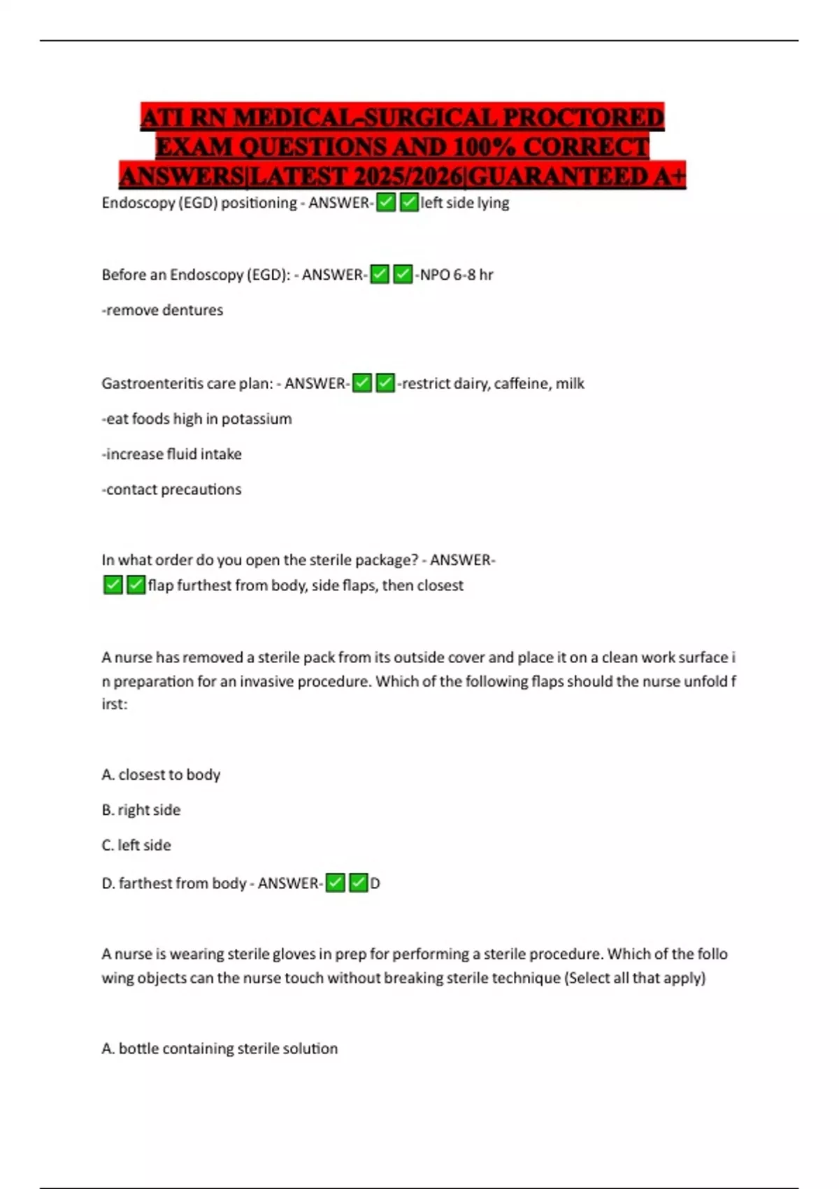 In what order do you open the sterile package? - ANSWER-