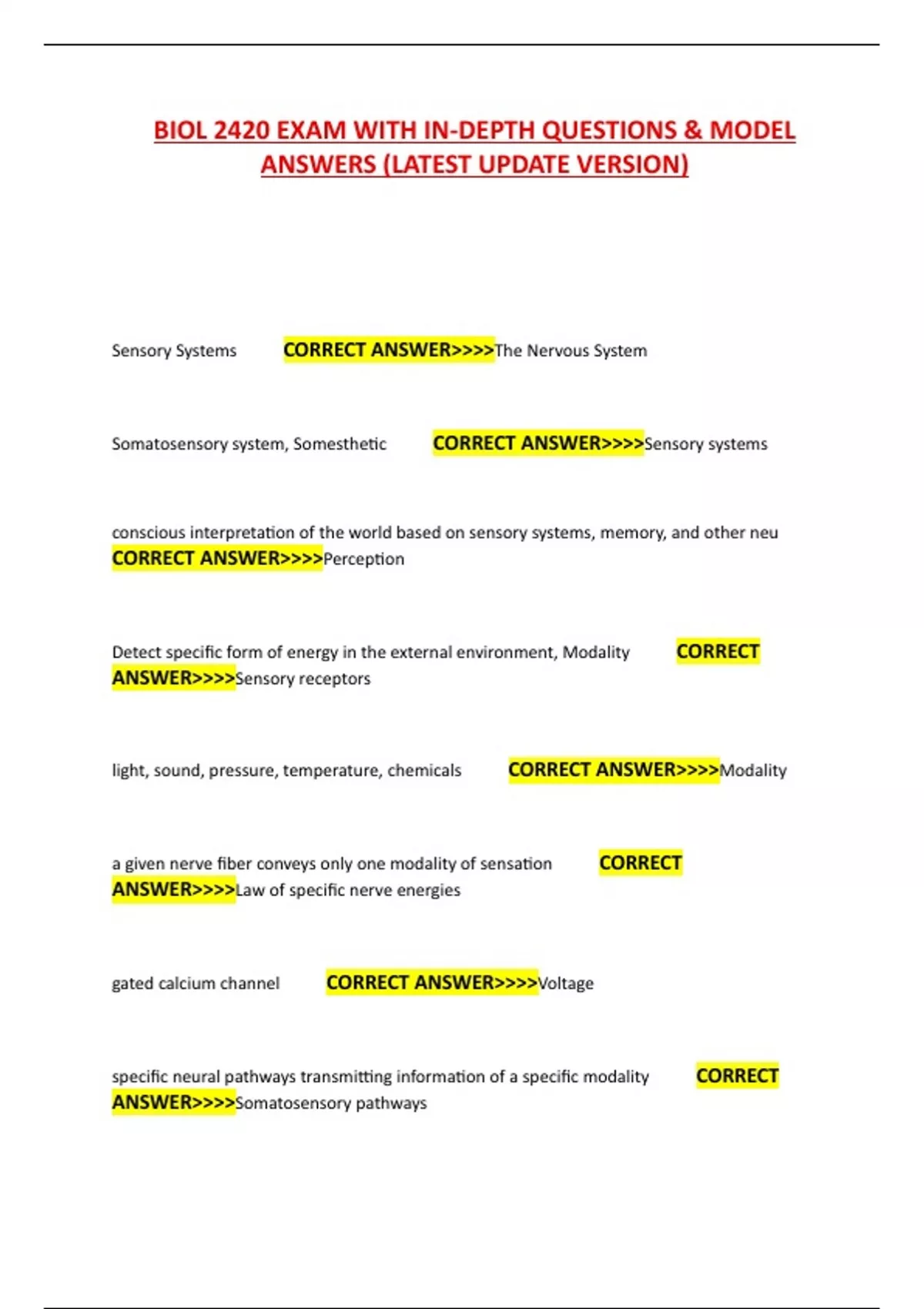 Sensory Systems CORRECT ANSWER>>>>The Nervous System