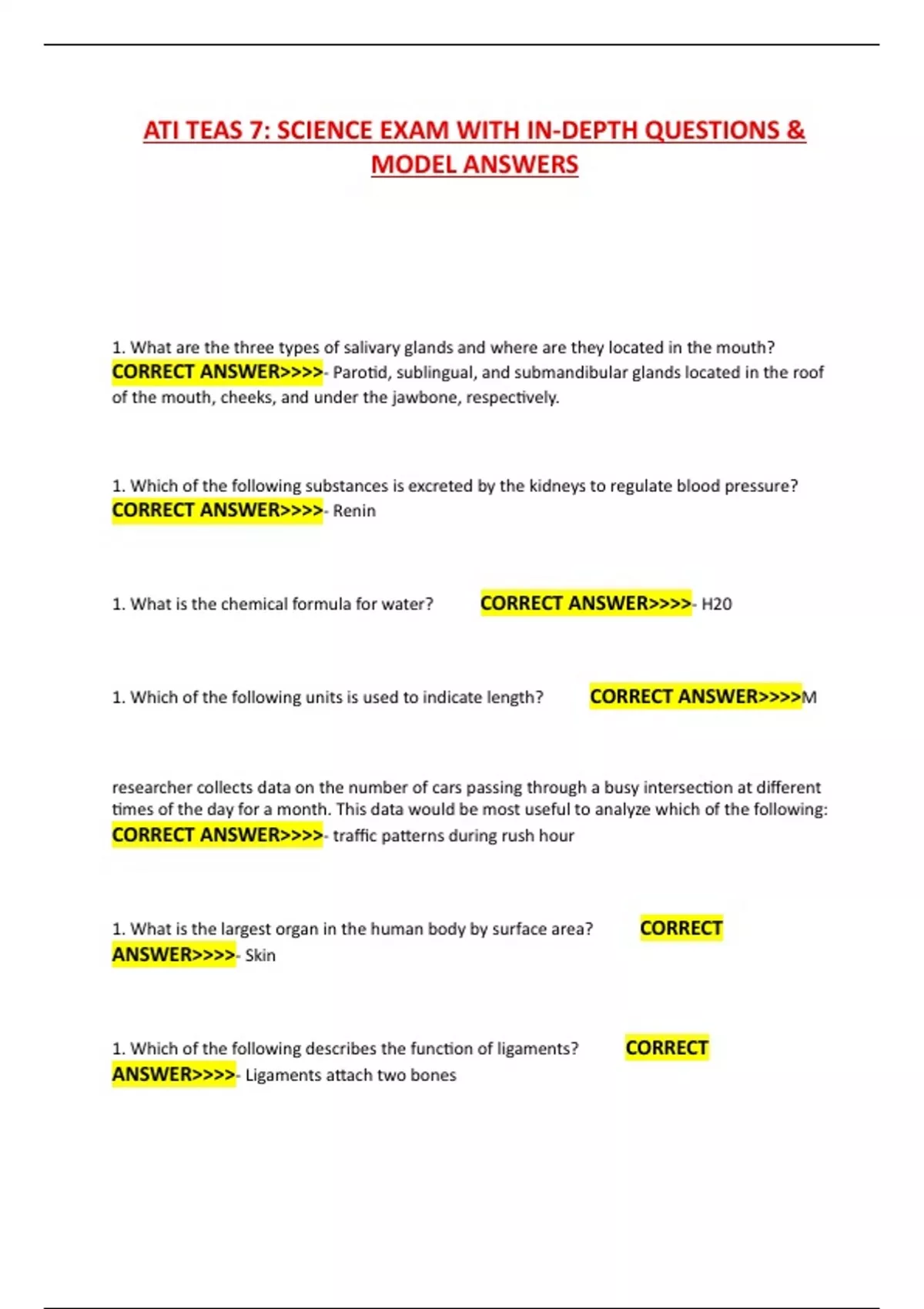 ATI TEAS 7: SCIENCE EXAM WITH IN-DEPTH QUESTIONS &