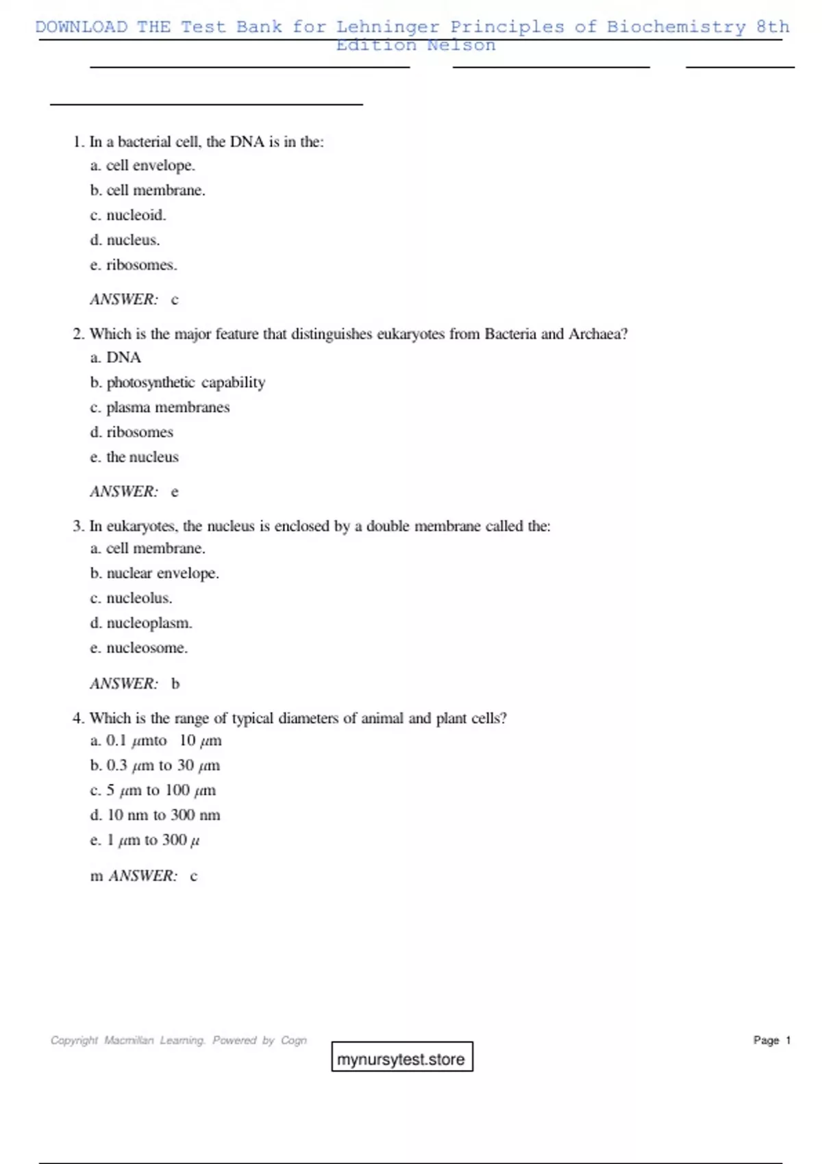 , DOWNLOADl2THEl2Testl2Bankl2forl2Lehningerl2Principlesl2ofl2Biochemistryl28thl2