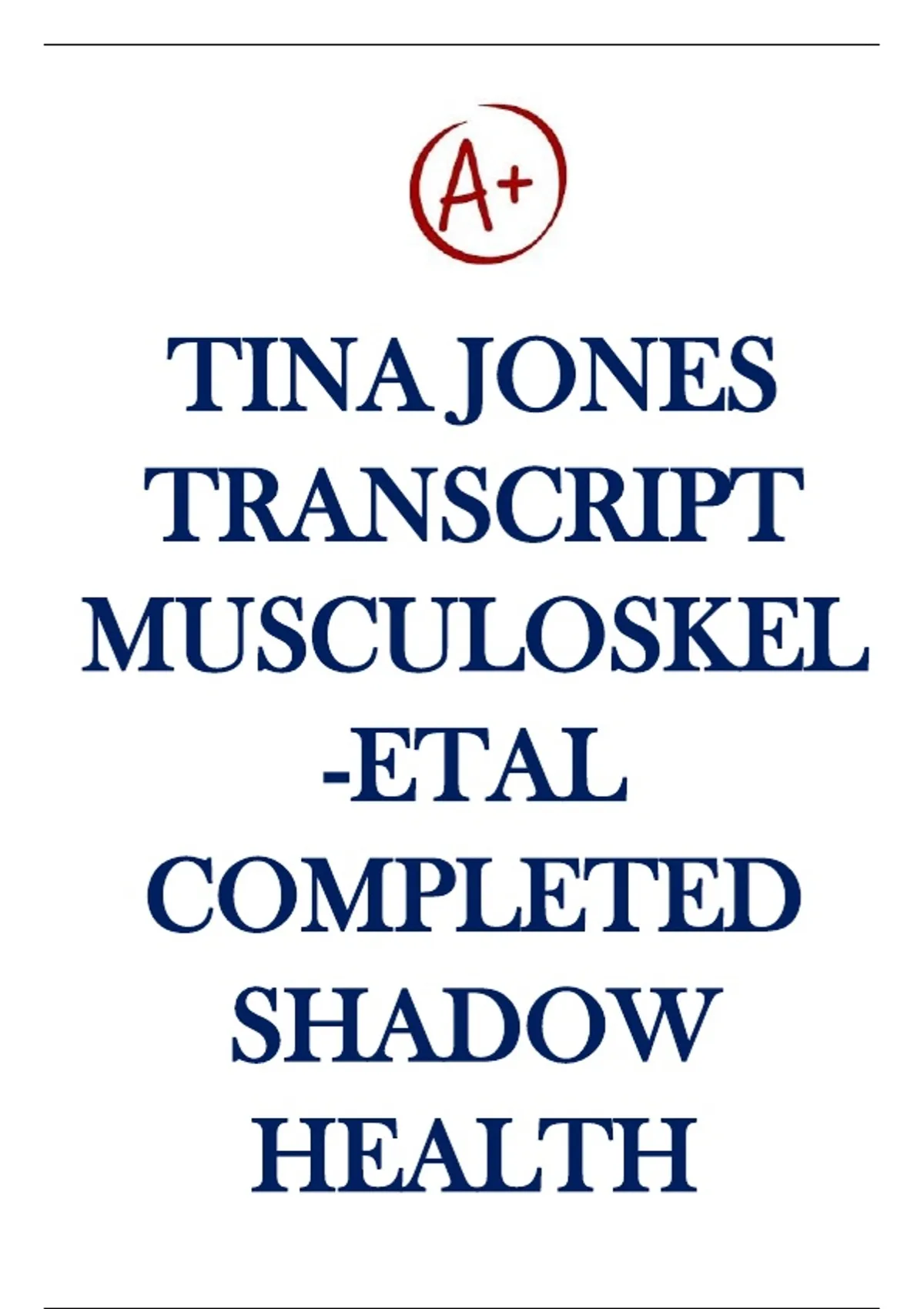 TINA JONES TRANSCRIPT MUSCULOSKEL -ETAL COMPLETED SHADOW HEALTH