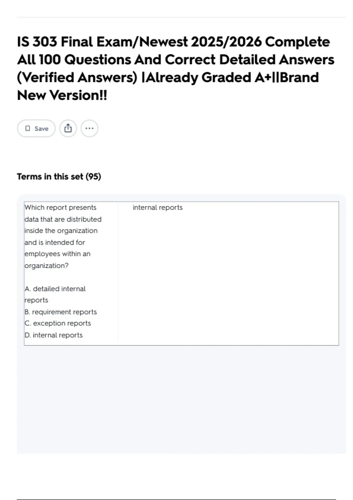 IS 303 Final Exam/Newest 2025/2026 Complete All 100 Questions And Correct Detailed Answers (Verified Answers) |Already Graded A+||Brand New Version!!