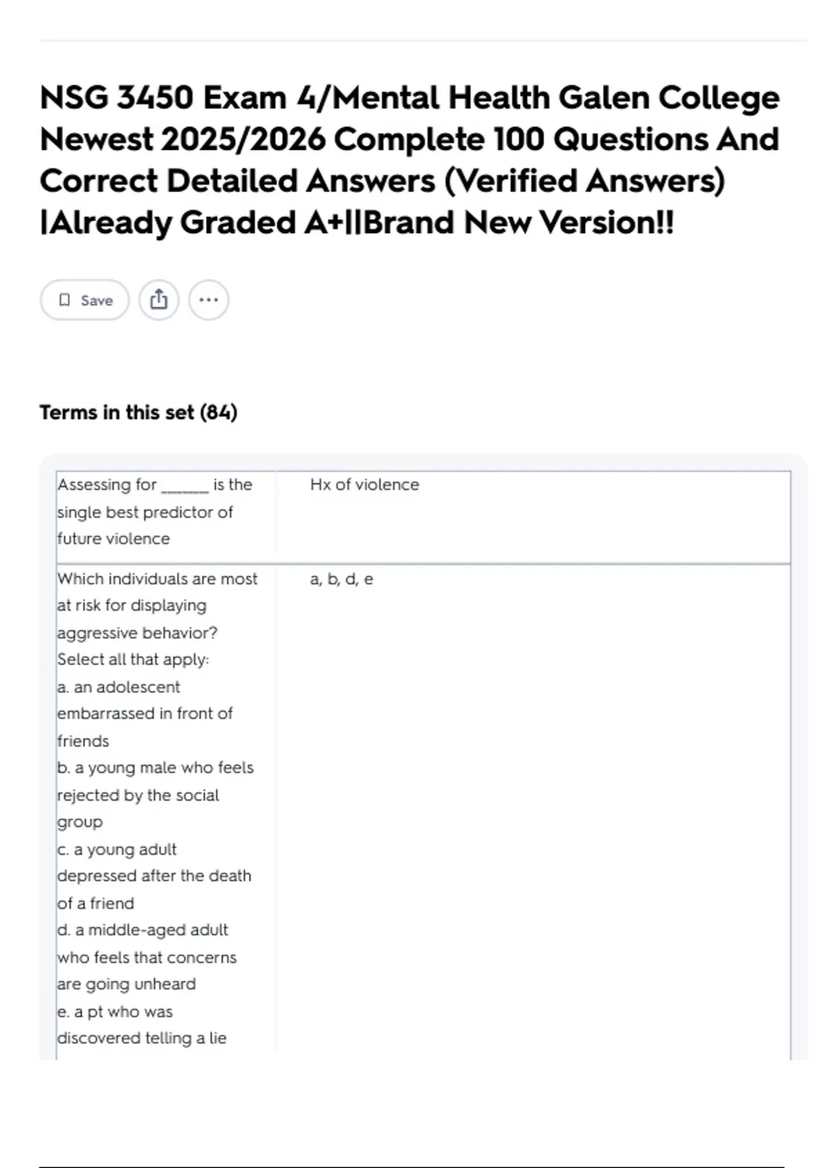 NSG 3450 Exam 2/Mental Health Galen College Newest 2025/2026 Complete 100 Questions And Correct Detailed Answers (Verified Answers) |Already Graded A+||Brand New Version!