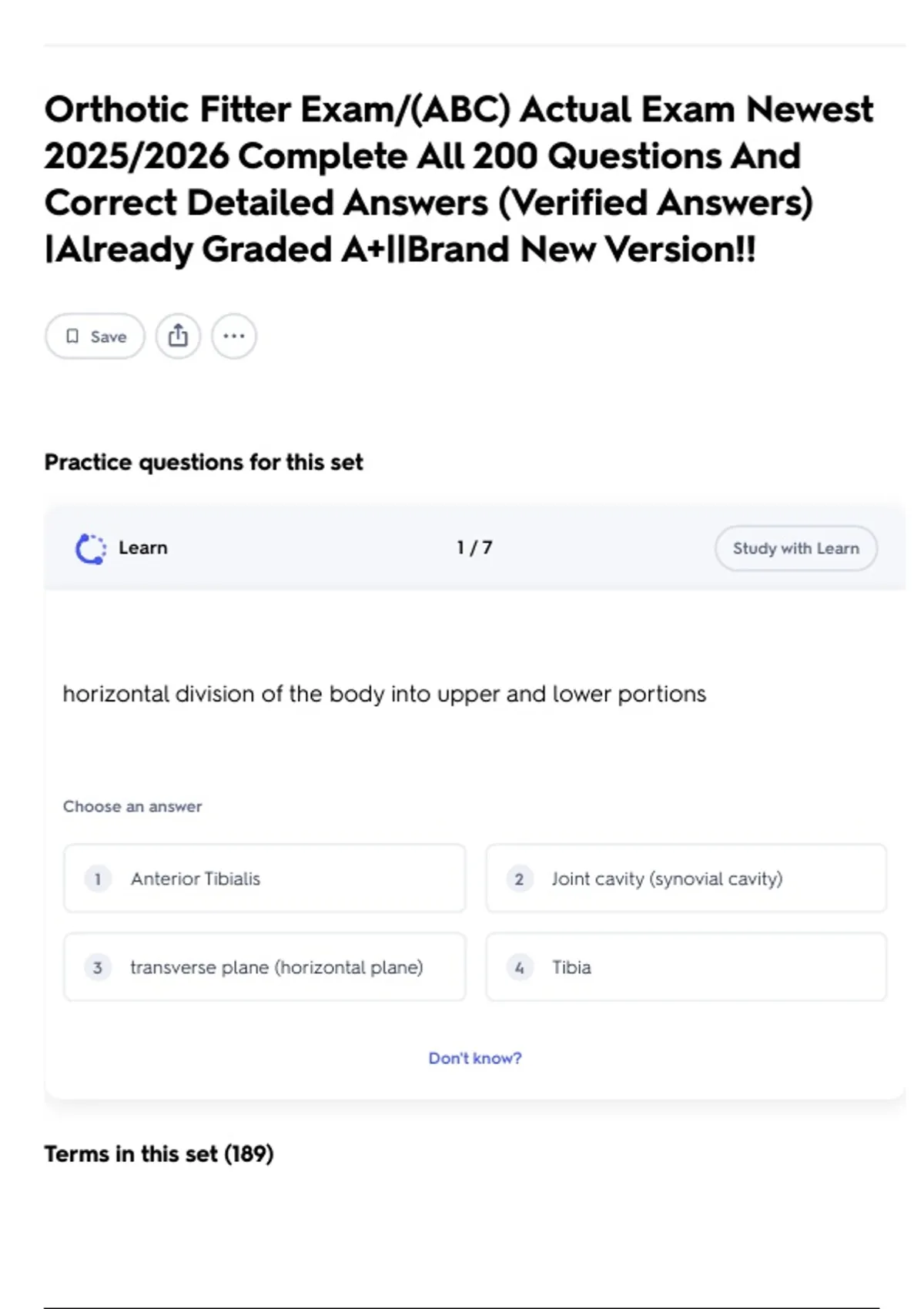 Orthotic Fitter Exam/(ABC) Actual Exam Newest 2025/2026 Complete All 200 Questions And Correct Detailed Answers (Verified Answers) |Already Graded A+||Brand New Version!!